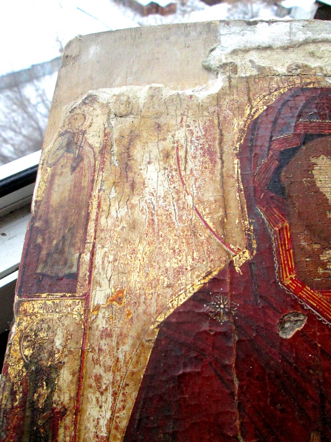 Икона Тихвинская Богородица. Живопись хорошего школьного уровня, на сусальном золоте. 18-19 век В работу. Лик Богородицы красивый. Без каких либо вмешательств и реставрации.