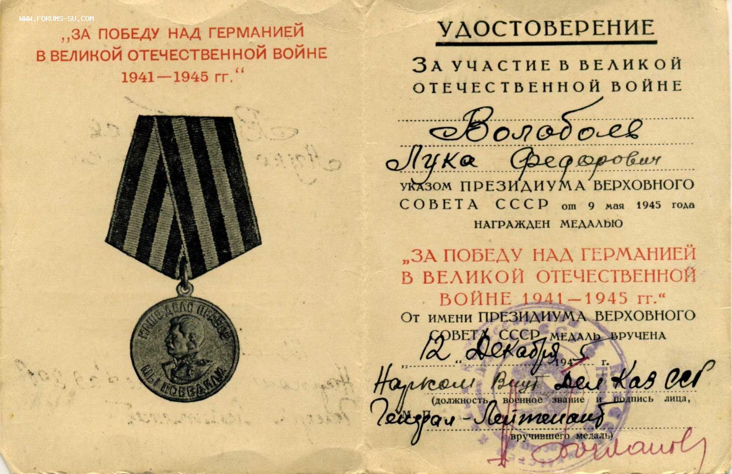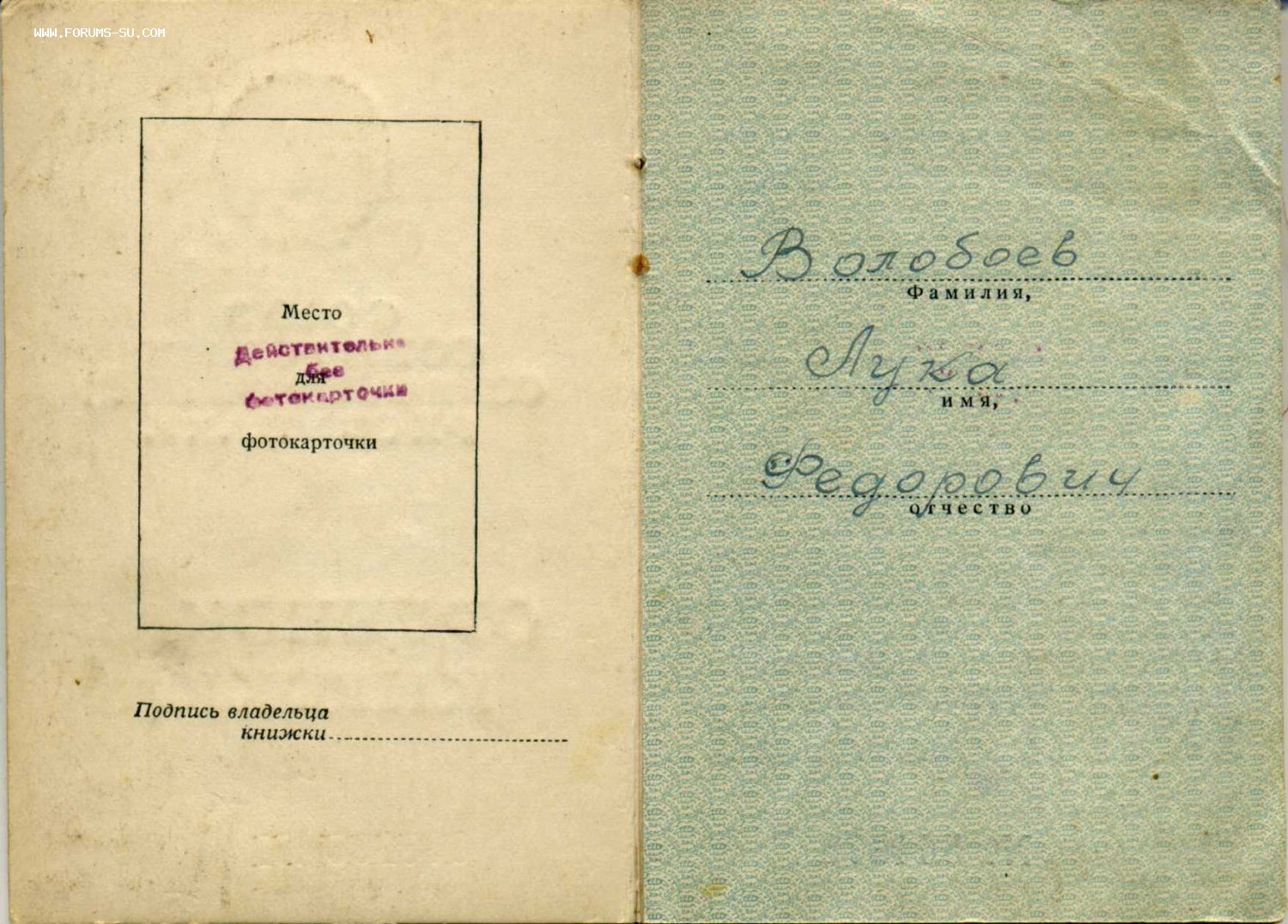 БКЗ 298853 на Волобоева Луку Федоровича.