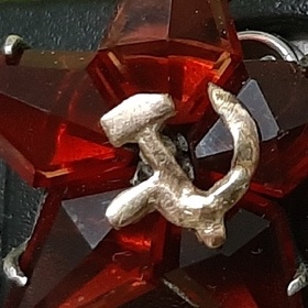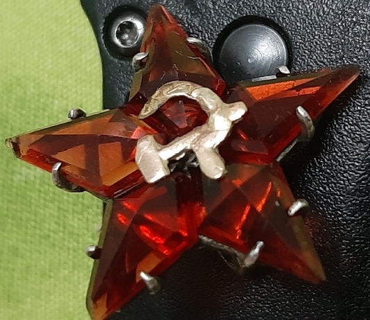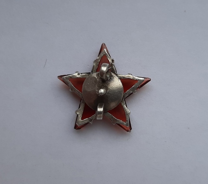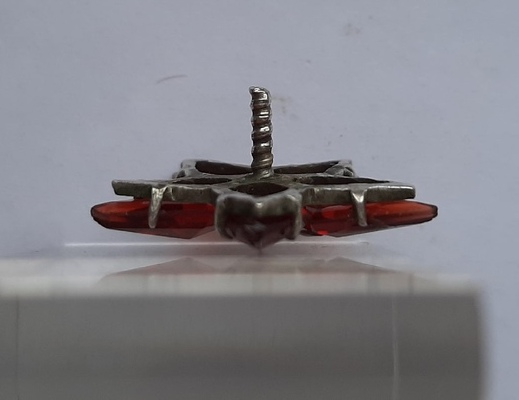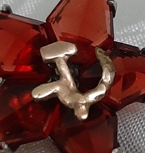 Предложу, состояние на фото. На лучах есть сколы, на верхнем луче на втором фото создается иллюзия того что луч цел, ракурс такой. Основа серебро 84, СиМ золото 585.