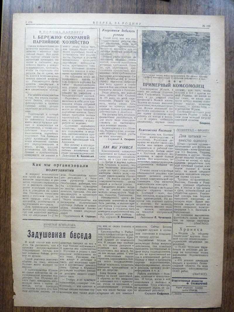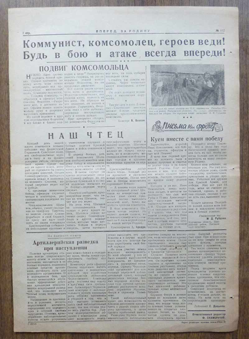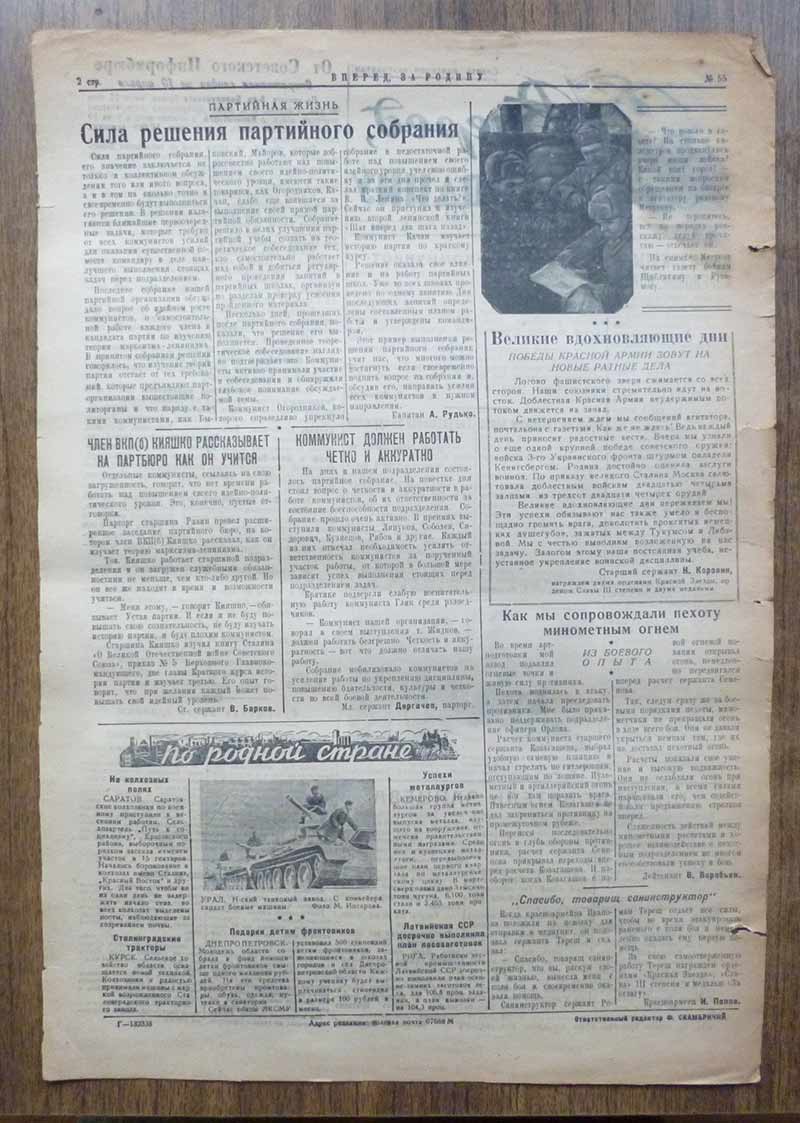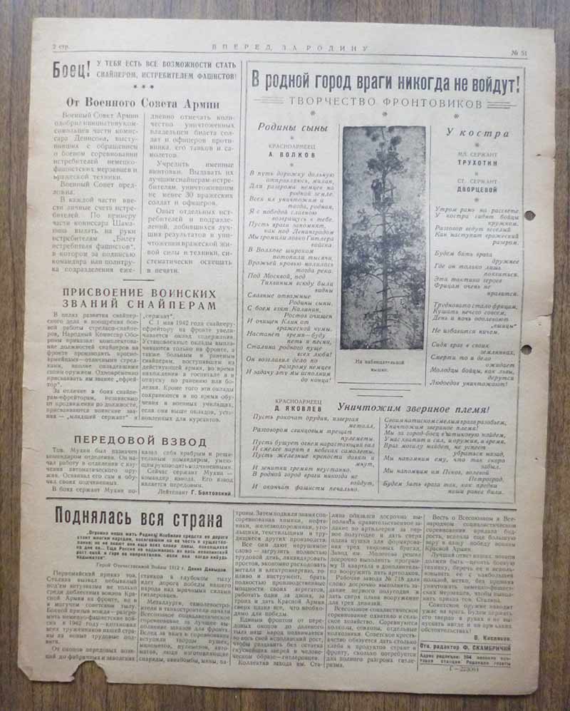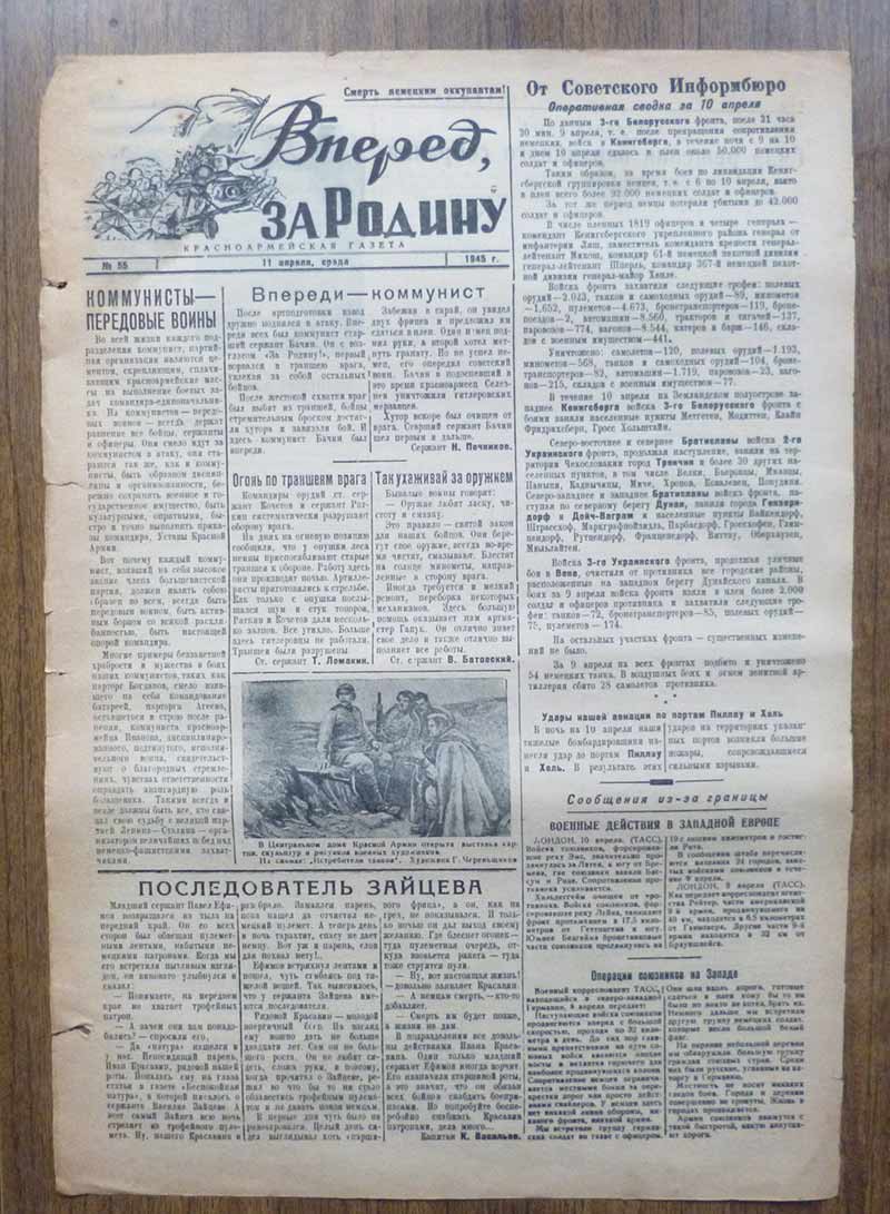Красноармейская газета "Вперед. За Родину" октябрь 1943 года
