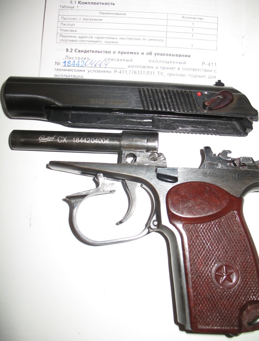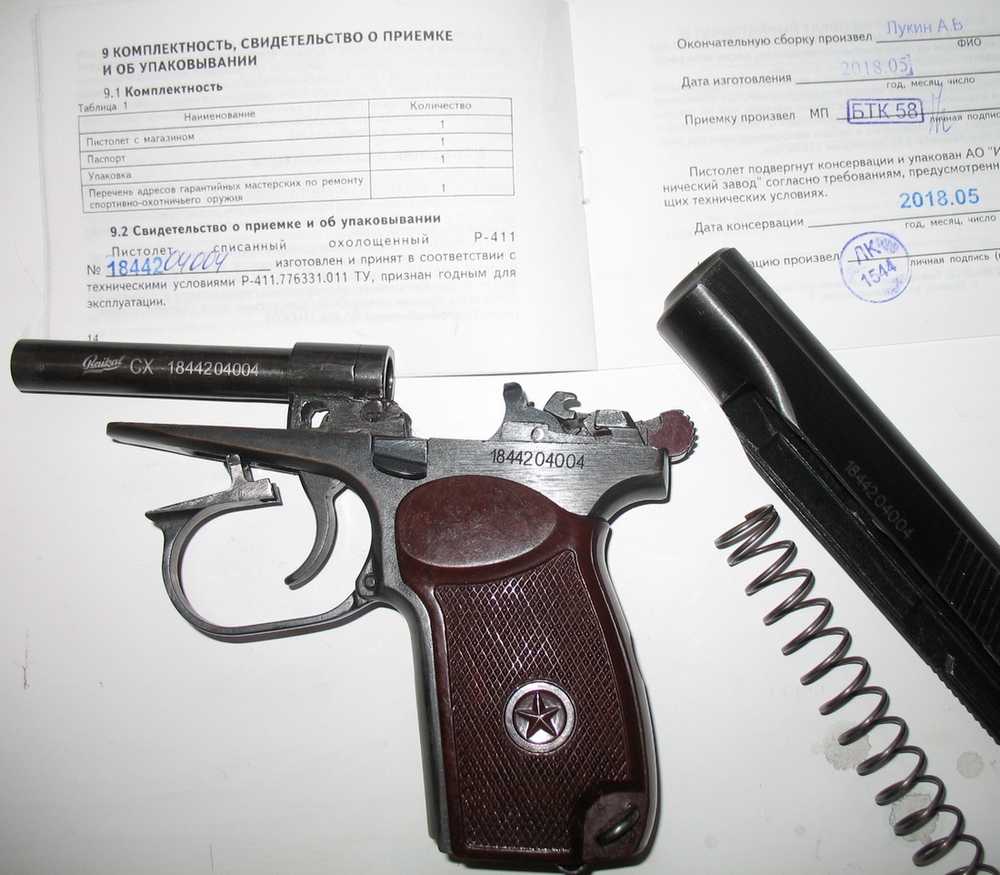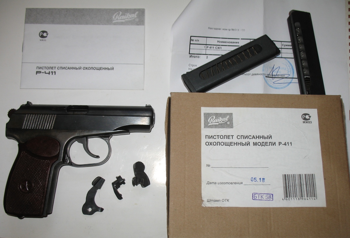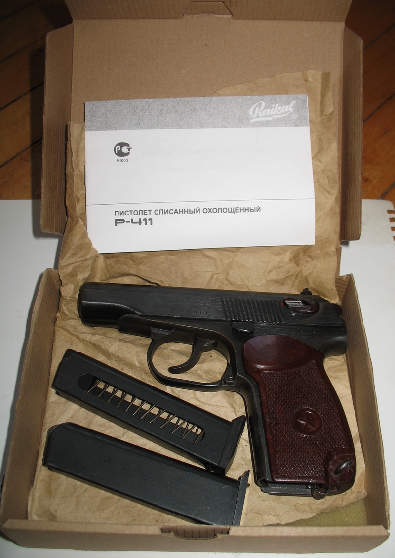 Комплектация: Р-411, безномерной магазин с металлич пяткой, паспорт( руководство по эксплуатации), копия сертификата, товарный чек из инет-магазина, коробка. Бонусом отдаю безномерной магазин с пластиковой пяткой набитый расходниками 8шт, курок, предохранитель и затв задержку. Цена очень доступная, качество заводское, поиграться самое оно. Цена 17000руб