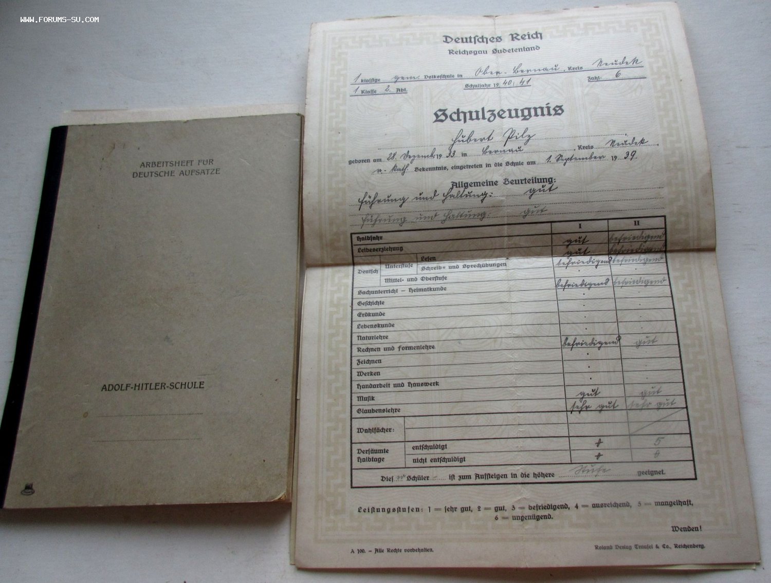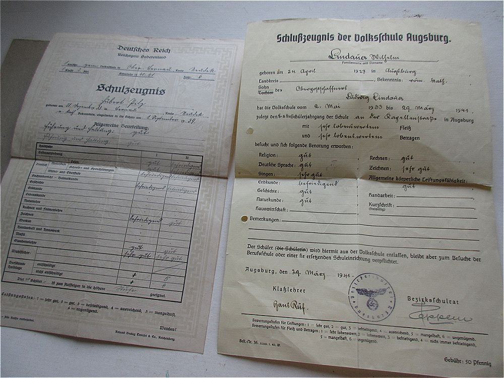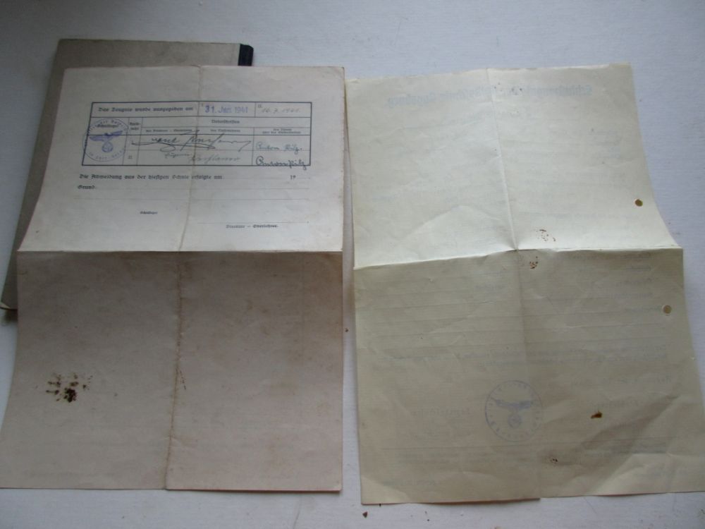 Тетрадь из школы Адольфа Гитлера в хорошем сохране, есть даже промокашка. В лот также входят 2 документа о школьном образовании в 3 Рейхе.