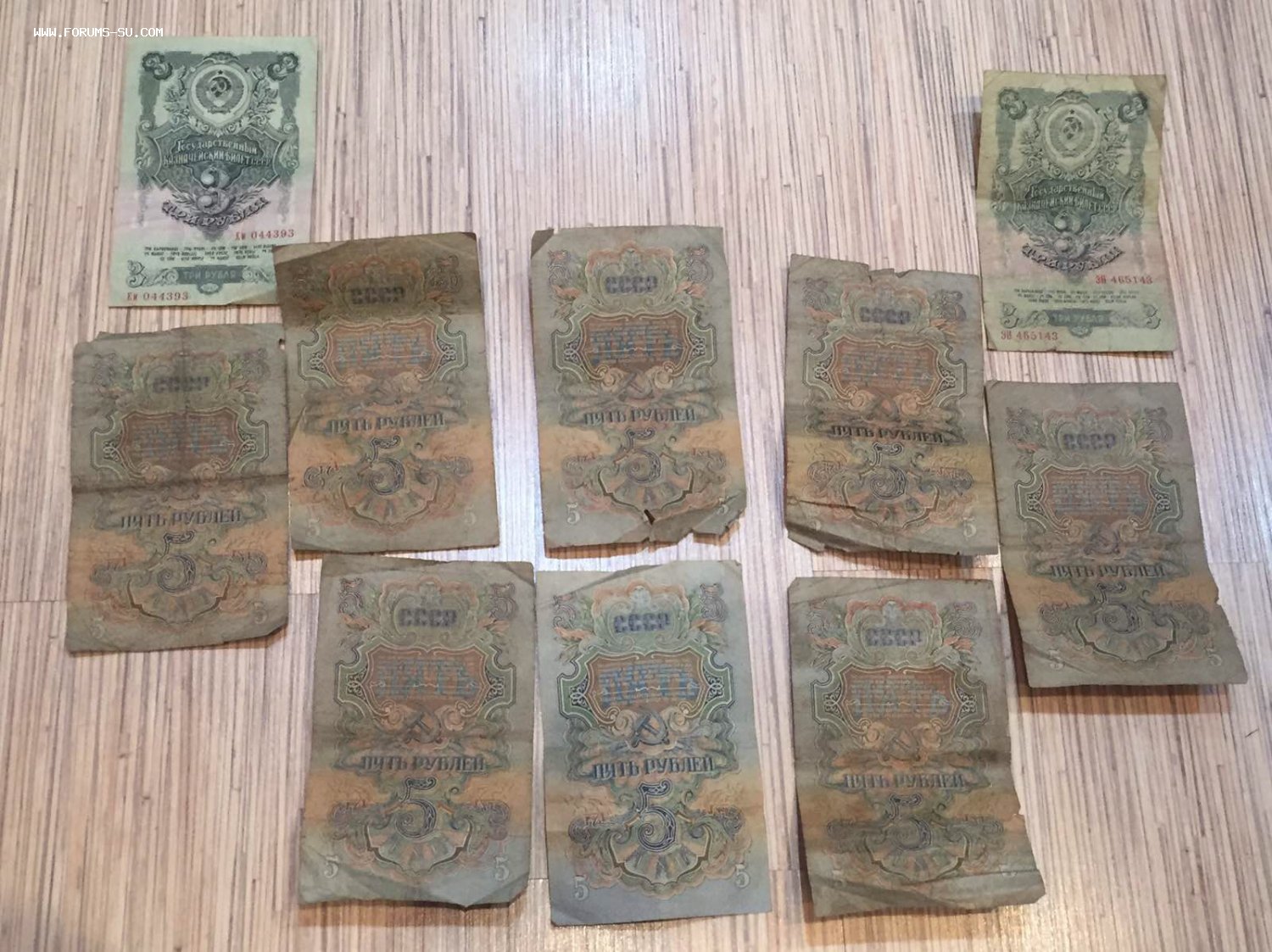 За пятёрку АВ 065776 и трёшку 044393 - 1 т.р.