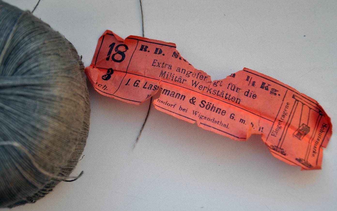 Нить оригинальная с оригинальной наклейкой производителя нити. На наклейке указано «extra angefertigt für die militär werkstätten» (специально для военных мастерских).