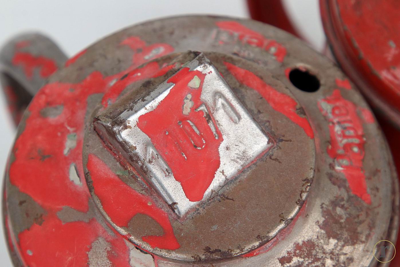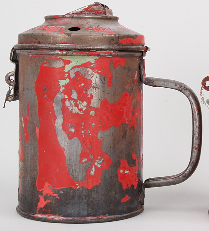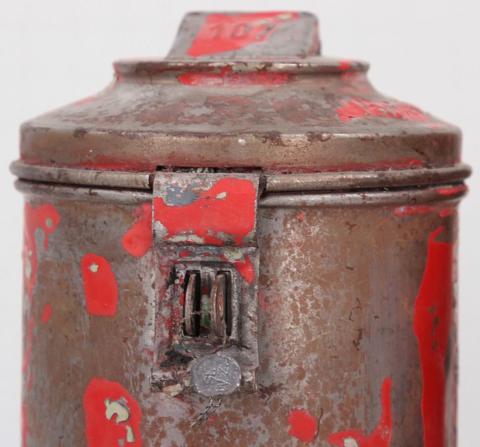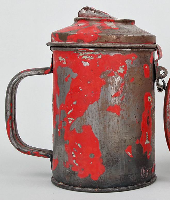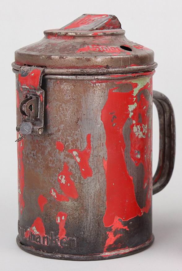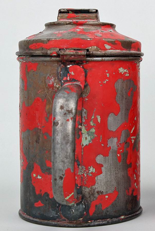 Копилка в виде кружки, высота 17 см, диаметр 10 см., остатки оригинальный красной краски. Копилка сделана из металла.