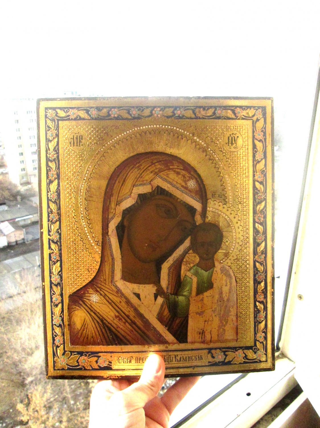 В продаже Икона "Казанская Богородица" Живопись темпера на сусальном золоте 19 век, без реставрации. Школьное письмо.