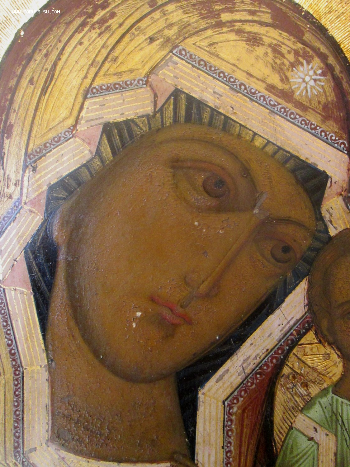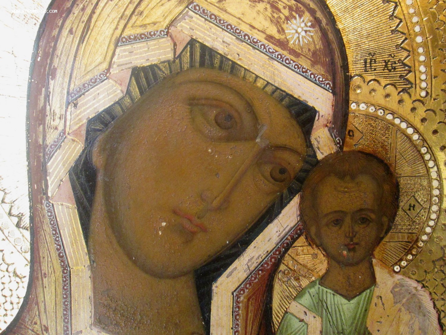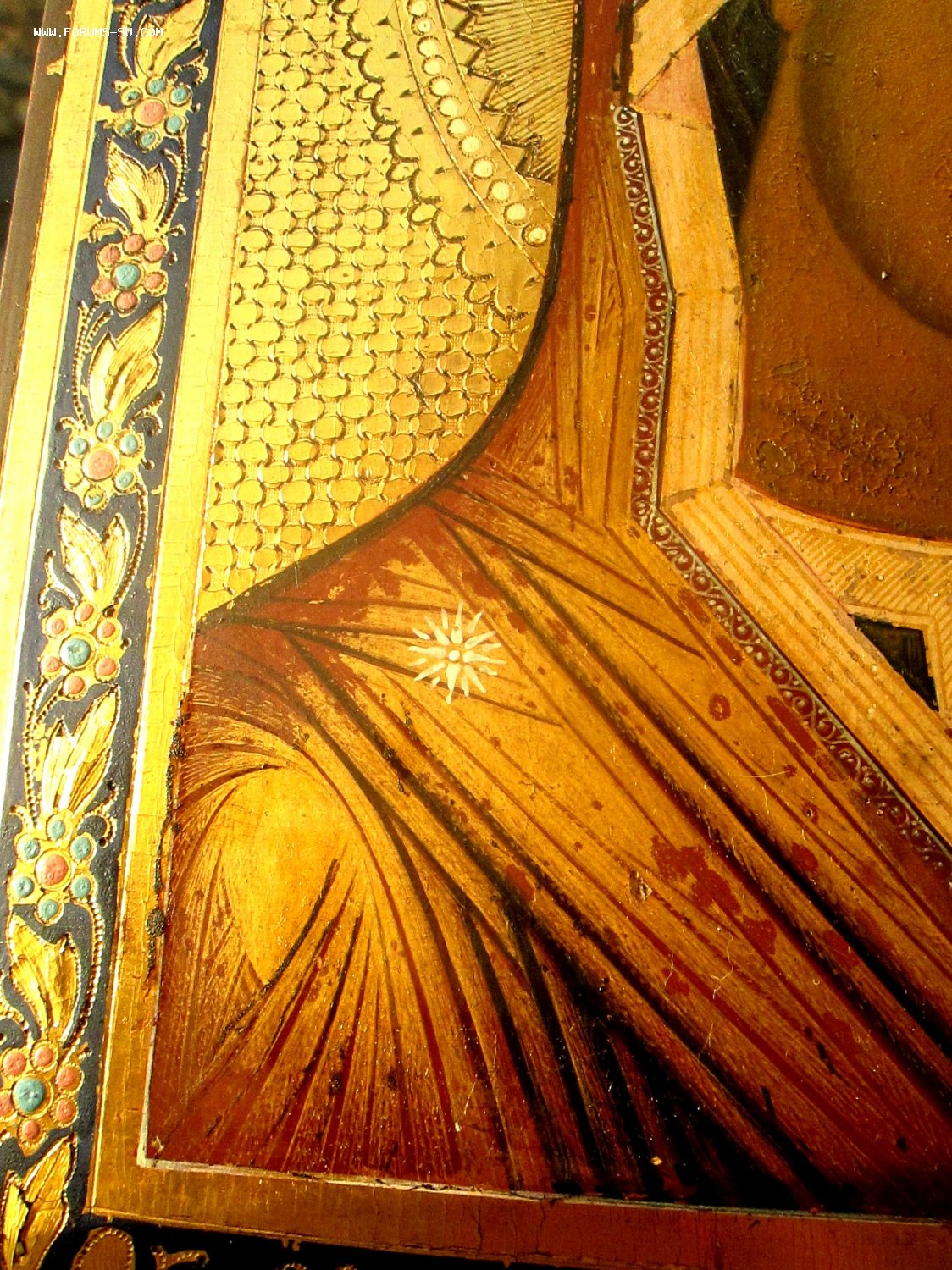 Сусальное золото в хорошем состоянии, не затертое, горит. Одежда расшита, твореным золотом.