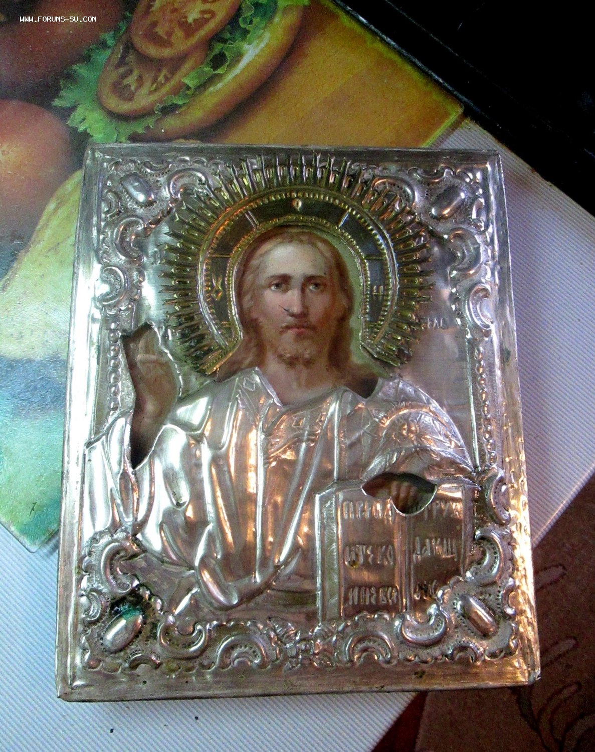 По региону написания, центральная Россия. Имеется родной оклад. Яркое родное серебрение. Не фольга.