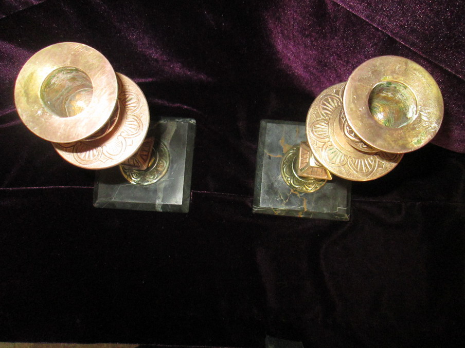 Подсвечники в оч.хорошем состоянии. конец 19 начало 20 века.Камень,литье,прочеканка. Монтировка. Н=19см. МПЦ 18000р