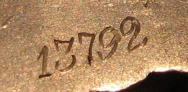 Разновидность 2. Клеймо находится в основании верхнего луча звезды. Слово "МОНЕТНЫЙ" закруглено по дуге вверх (впадиной). Минимальный известный номер – 16746, максимальный – 24045.