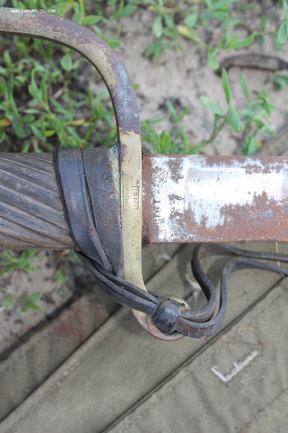 Темляк остатки ослабьте , чтобы втулку глянуть на рукояти ..по ходу это артиллерист .Клин от пяты 76, 5 см ?