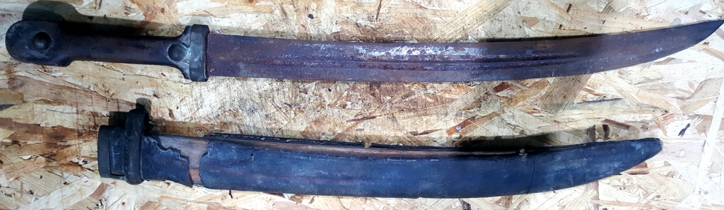 Ножны лопнули, всё родное, не менялось, как нашли.Ржавчина поверхностная