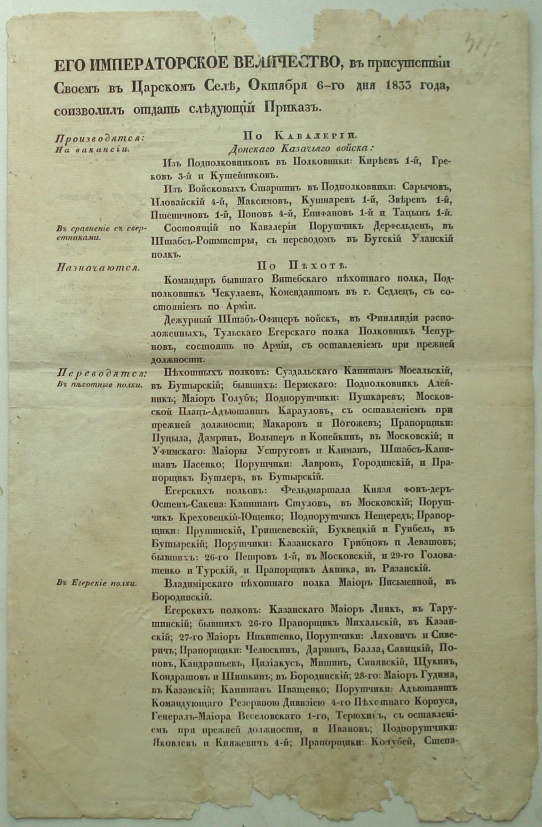 приказ Императора Николая 1 по военному министерству 1833 г. unker7 - 13 май 2020 18:39.21 × Мини профиль пользователя unker7 Сообщения: 2658 Зарегистрирован: 09 май 2005 21:44.35 Откуда: Россия Статус: Не в сети - 13 май 2020 18:39.21 #6428292 ВСЕ на фото... кадровый приказ ... РЕДКОСТЬ Размер 21 х 33 см.Предложите Фото отправку оплачивает покупатель.