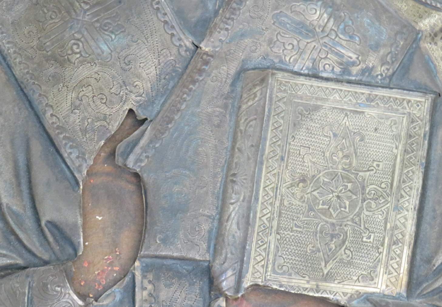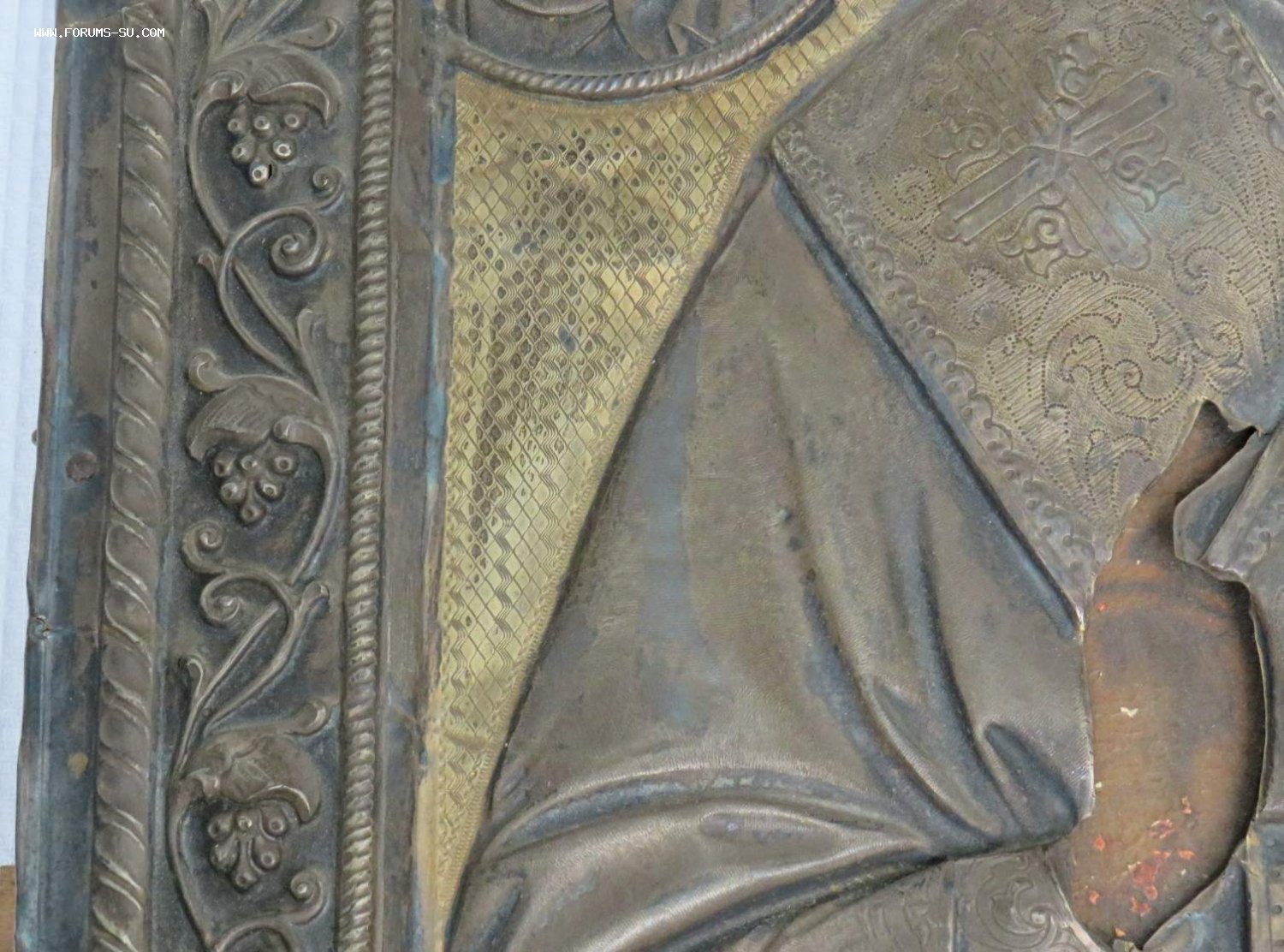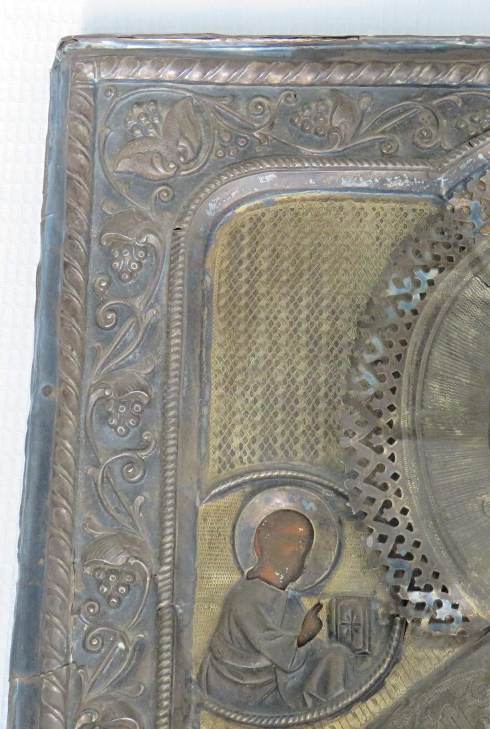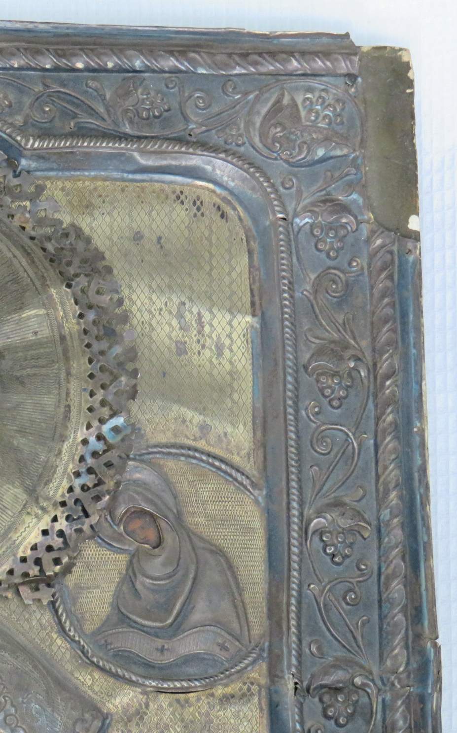 Большая икона в кованном серебряном окладе Николай Чудотворец 84 проба.