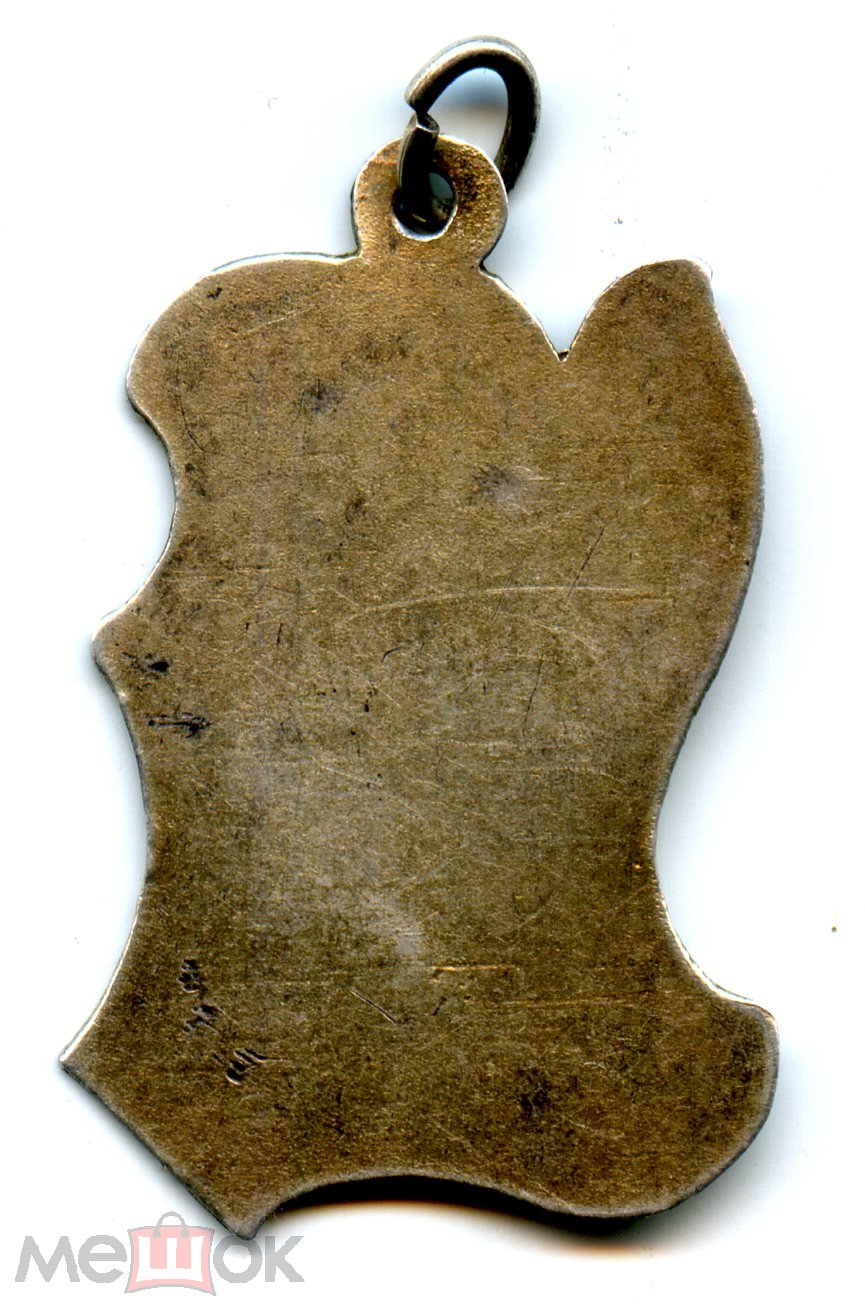Серебро 84 пробы. Размеры - 3,35 на 2,2. Вес с кольцом- 2,6 грамма.