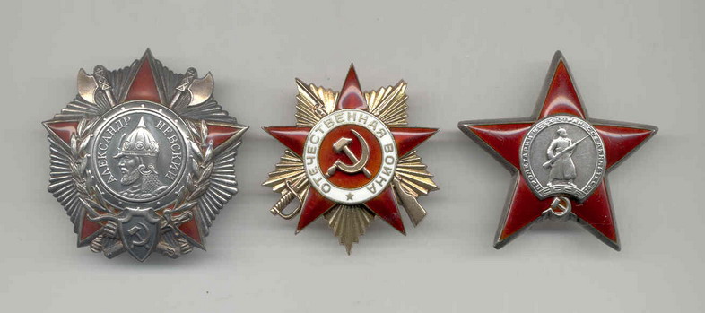 -Кр.Звезда за умелое руководство боями подразделения в 1942 году в боях с немецко-финскими захватчиками на Корельском перешейке.