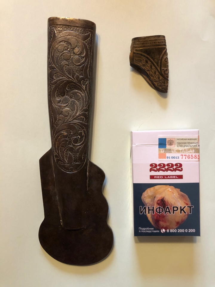 От какой сабли может быть стакан? Иностранный или российский? Достаточно массивный, есть маленькая ниточка-остаток золочения. Сигареты и Н2 для масштаба.