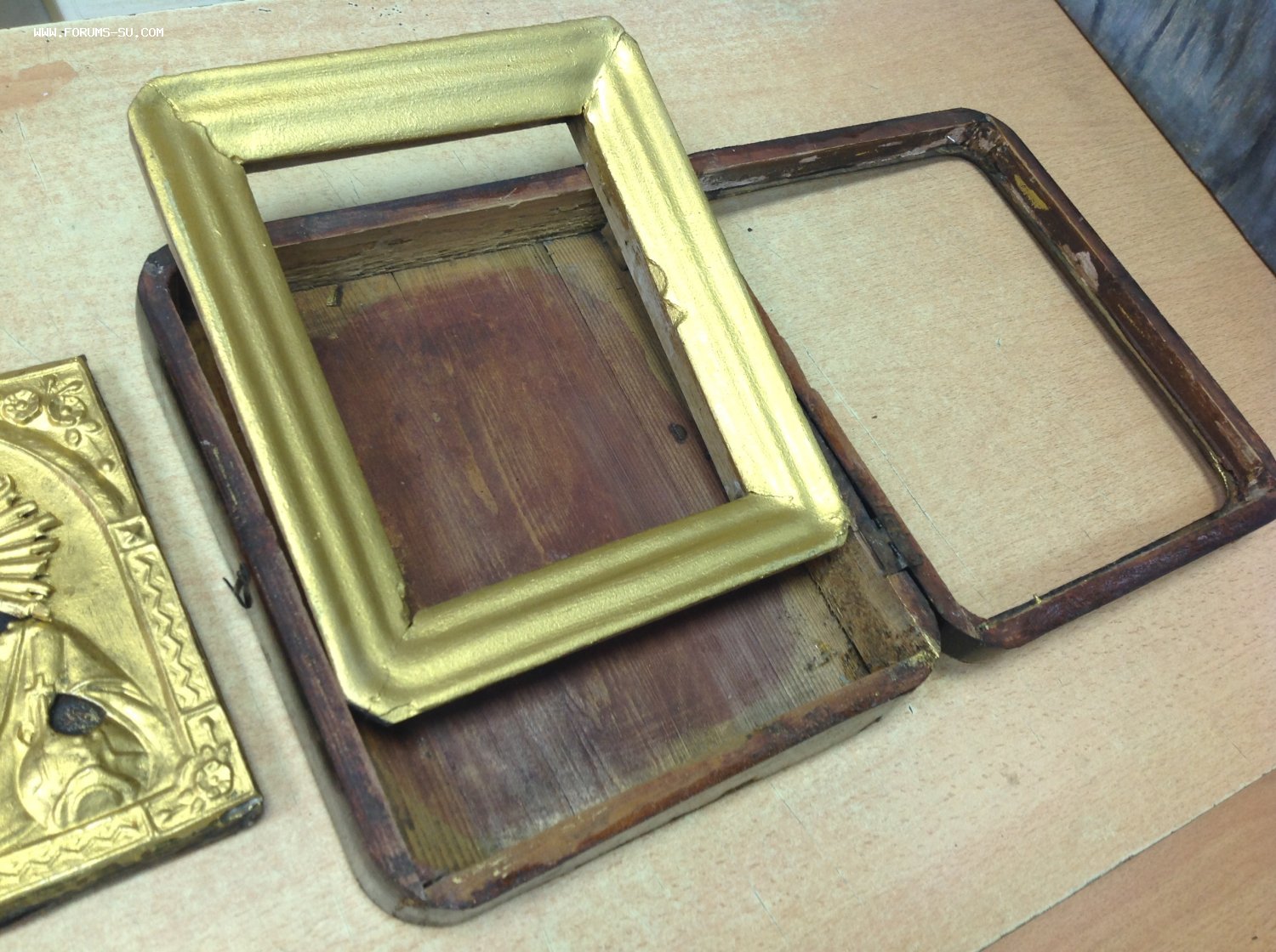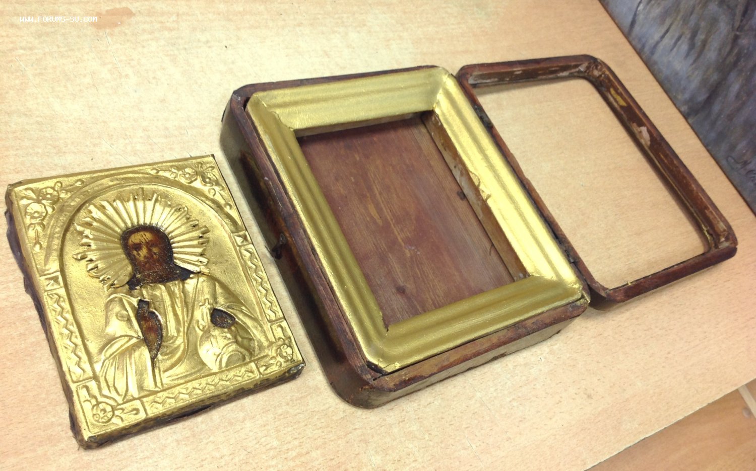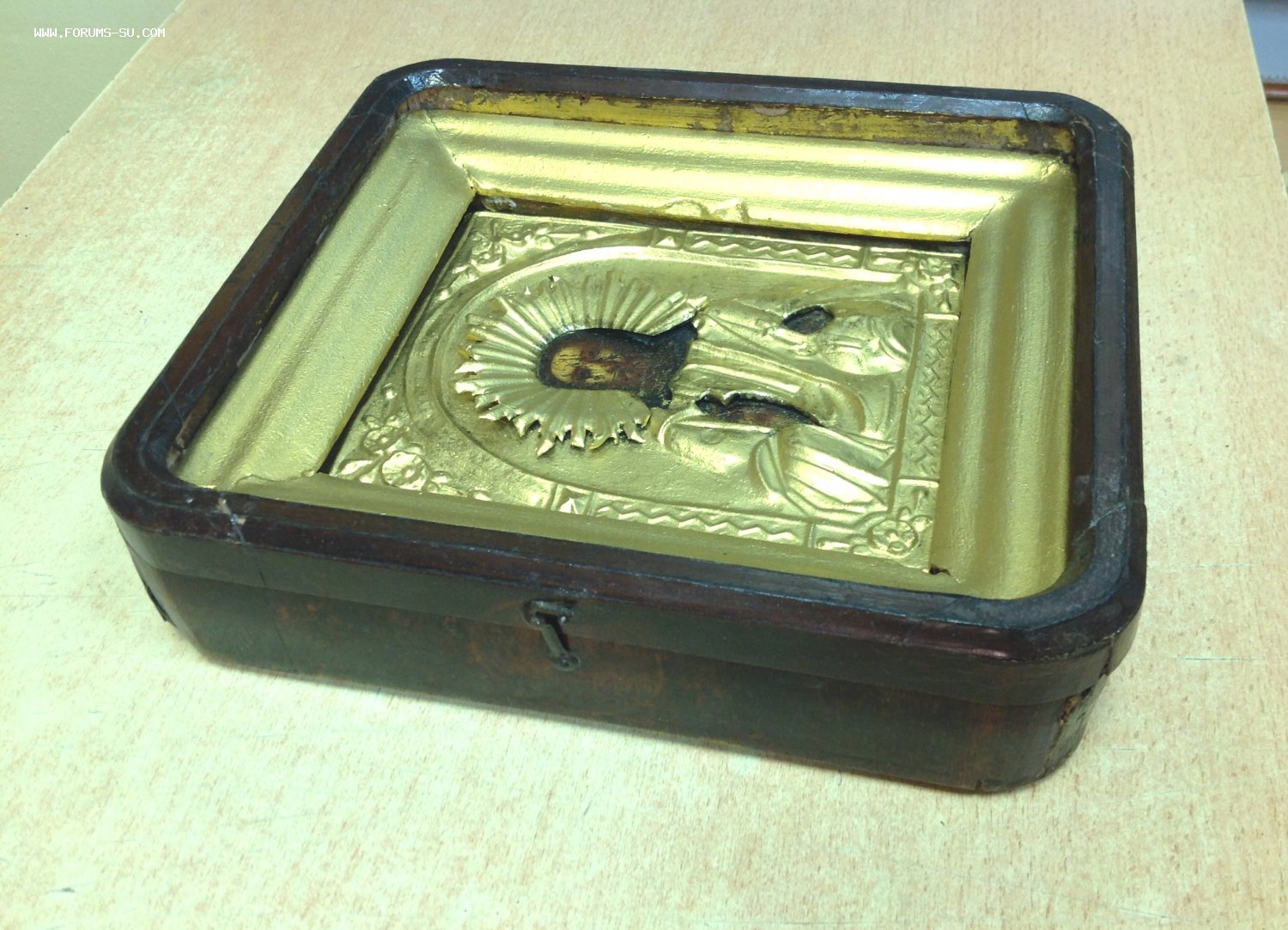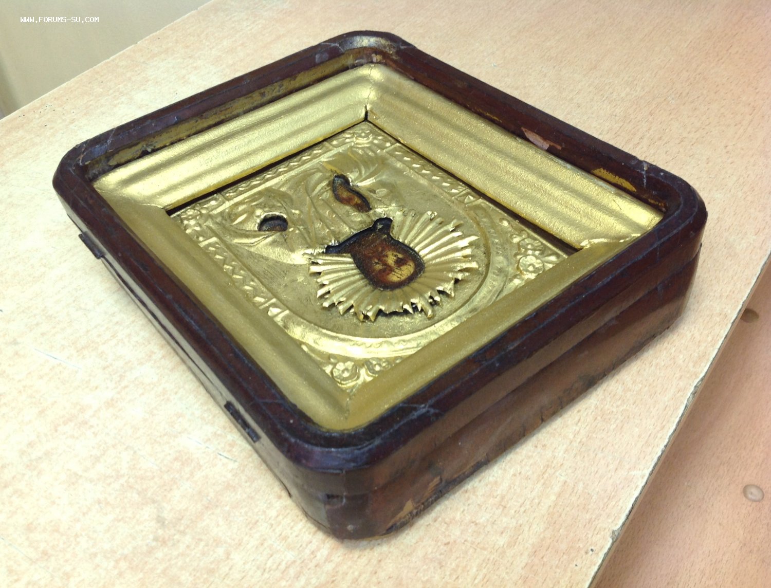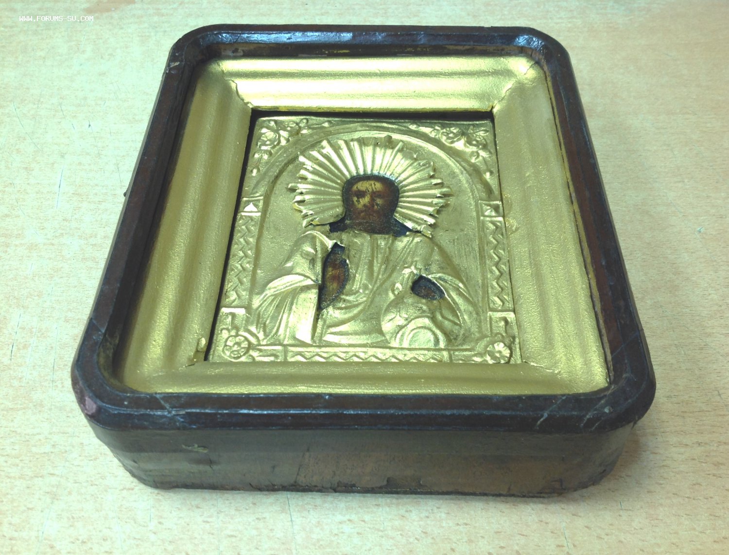 Габариты киота 25,5 см на 22,5 см. Толщина 6,5 см. Следы бытования.Нет стекла. Размер иконы 18 см на 14 см. Оклад покрашен бронзянкой ,как и рамка. Мпц 2тр доставка на покупателе