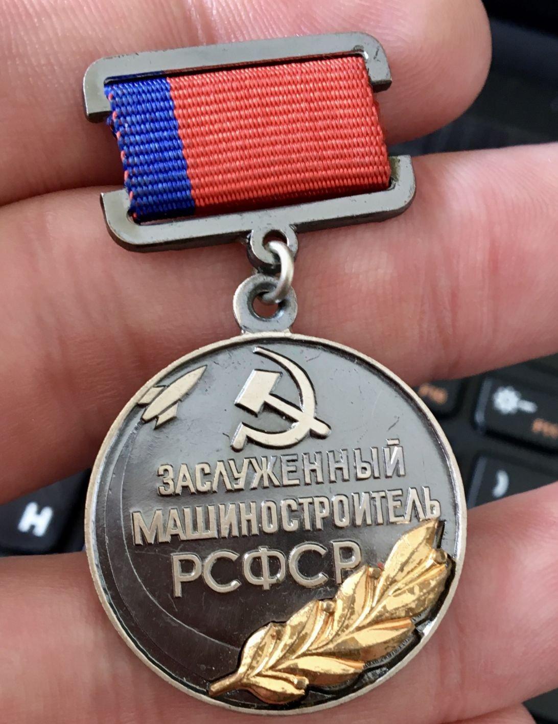 Знак "Заслуженный машиностроитель РСФСР". Редкий.