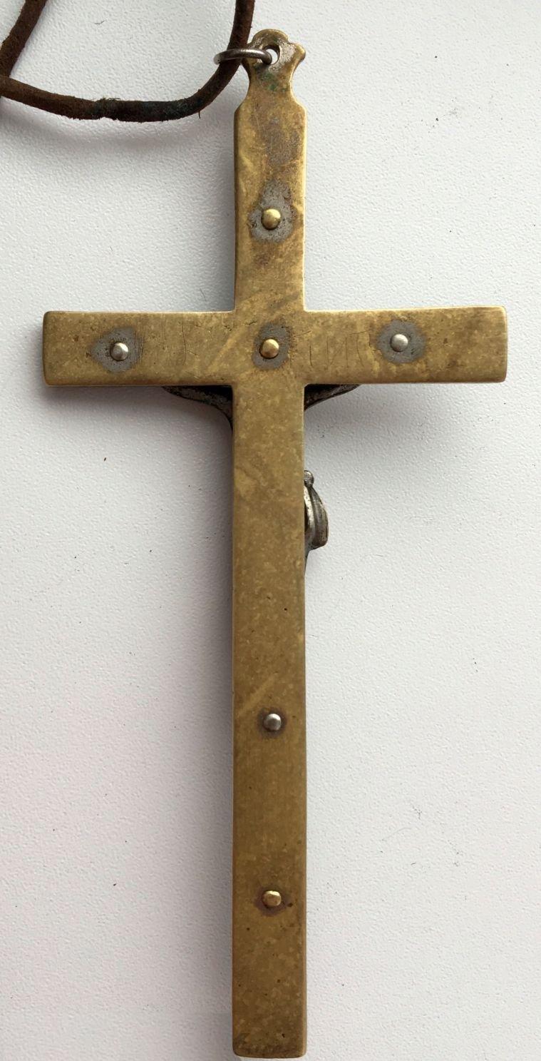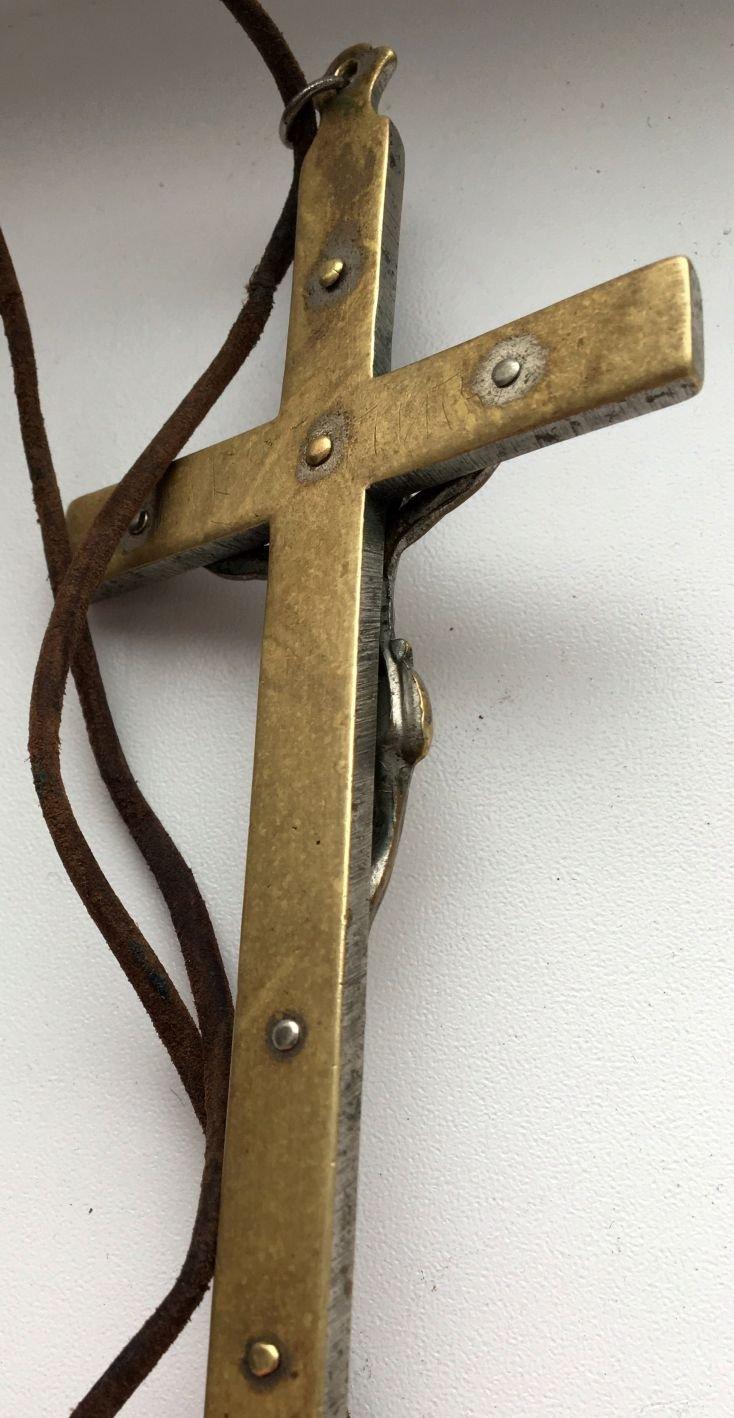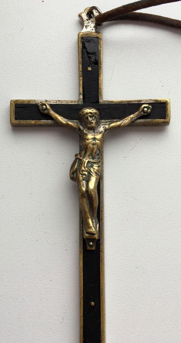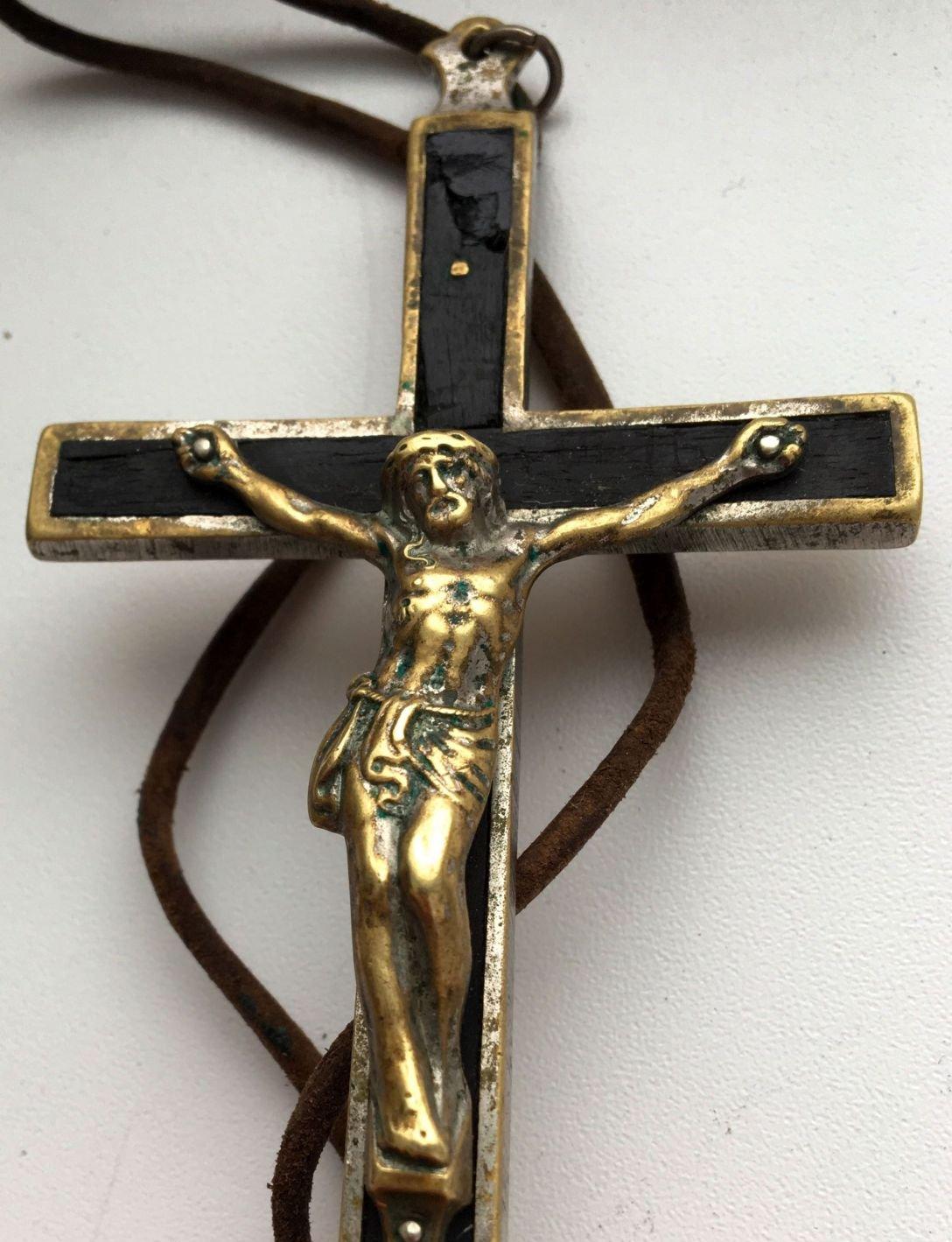 Крест католического священника. Бронза, дерево, серебрение. Размер 12,5 х 6 см.