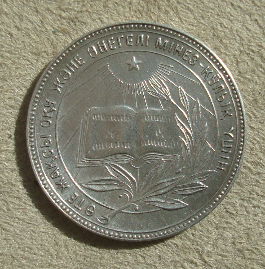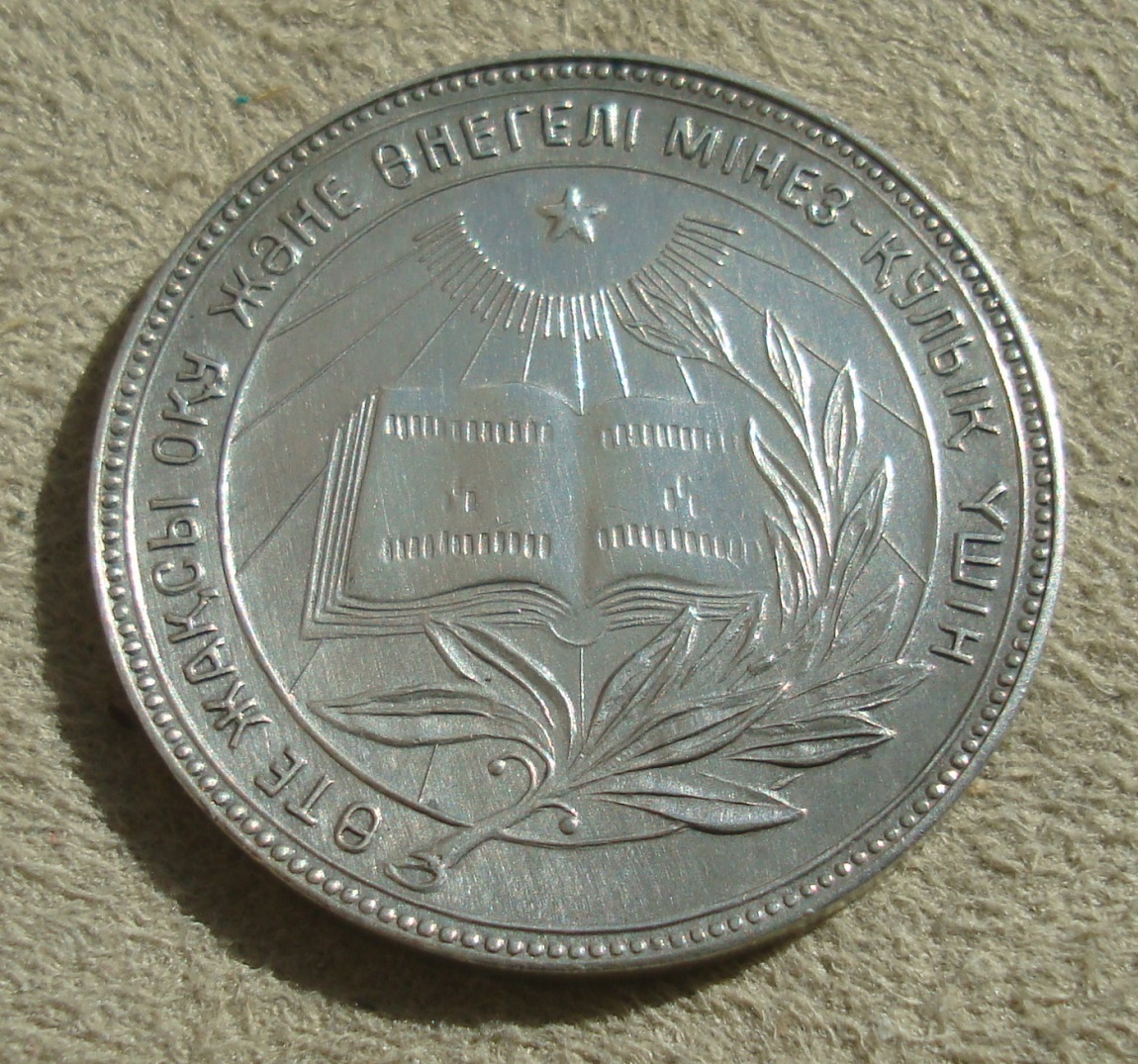 Малая серебряная школьная медаль КАЗАК ССР . Диаметр 32 мм. Вес 15,73 гр.