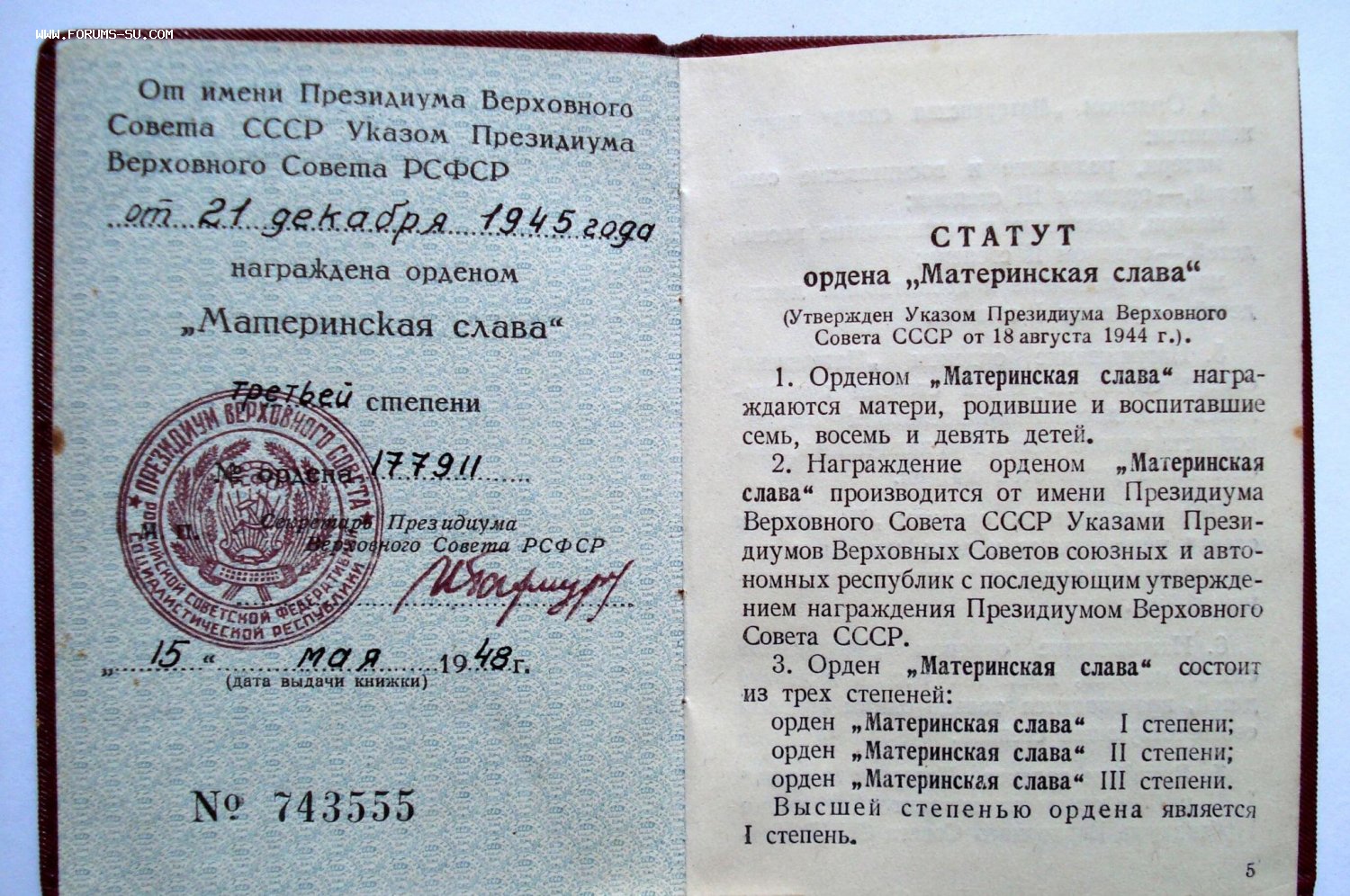 Очень редкая орденская книжка с печатью "ДУБЛИКАТ" на титульном листе. Сам знак не менее редкий, ранний тип, с зеркальной колодкой.