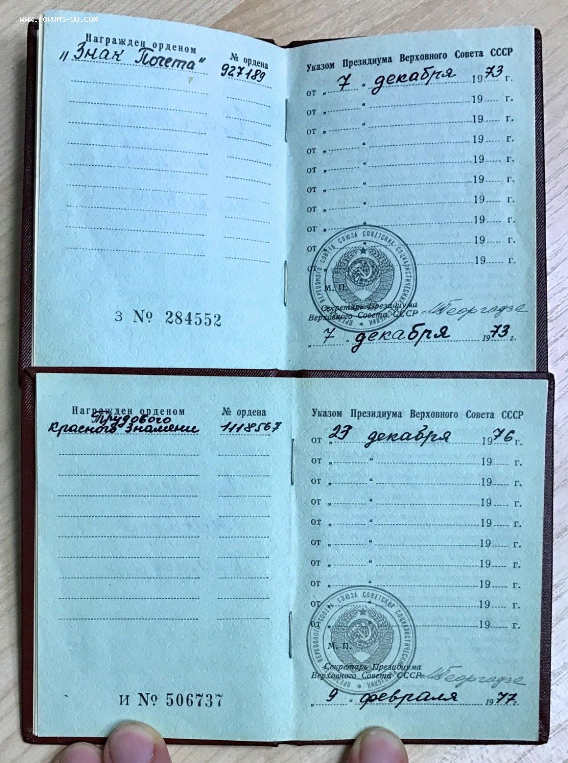 Лот состоит из СЕМИ орденских книжек. 5 шт. на отечки, 1 шт. на трудовик, 1 шт. на знак почета. Смотрите внимательно фото. Все книжки в хорошей сохранности. Скрепки держат листочки хорошо, страницы все целы и на месте.