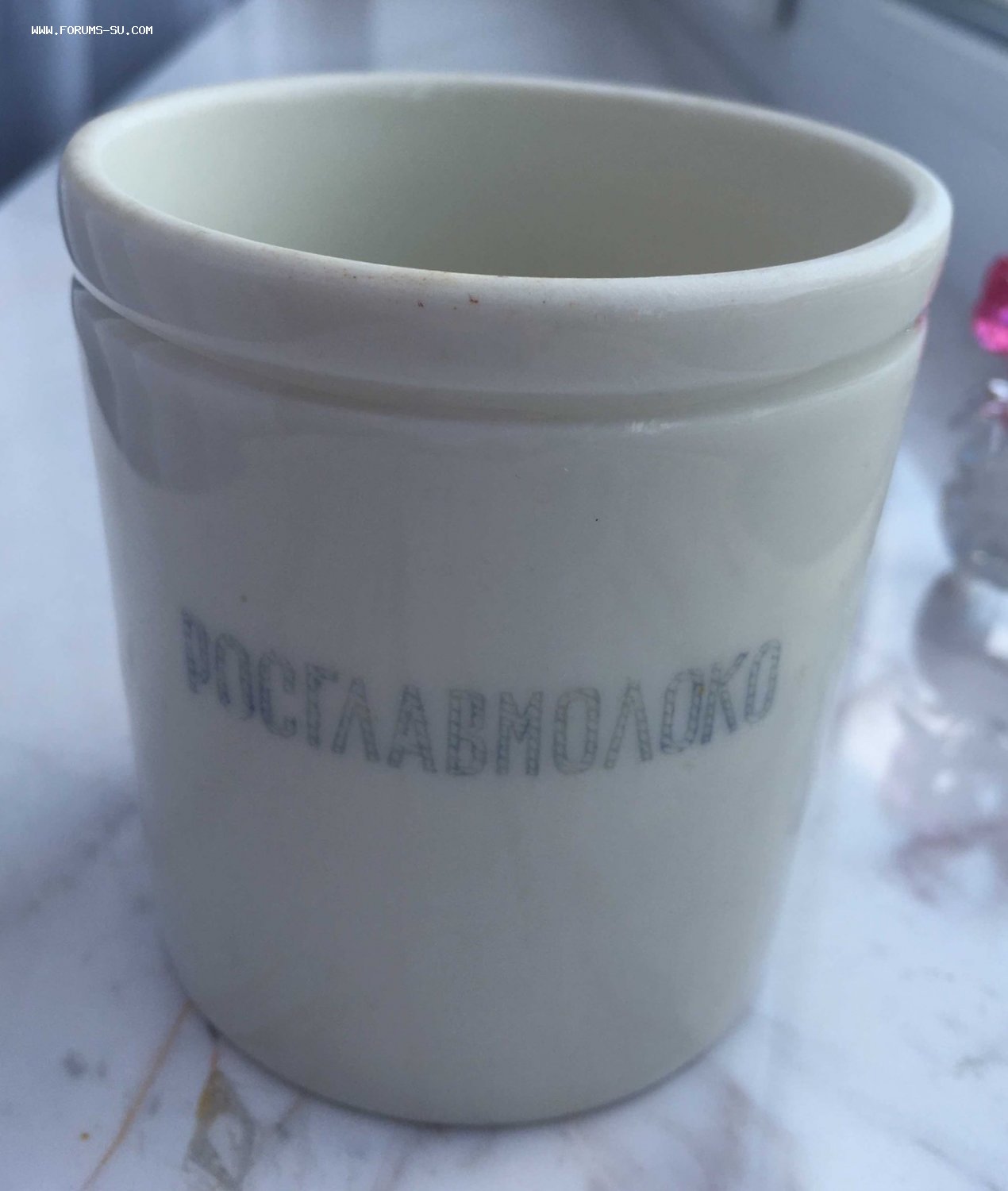 Ёмкость для продажи сметаны, сверху надевалась бумага и завязывалась по борозде.