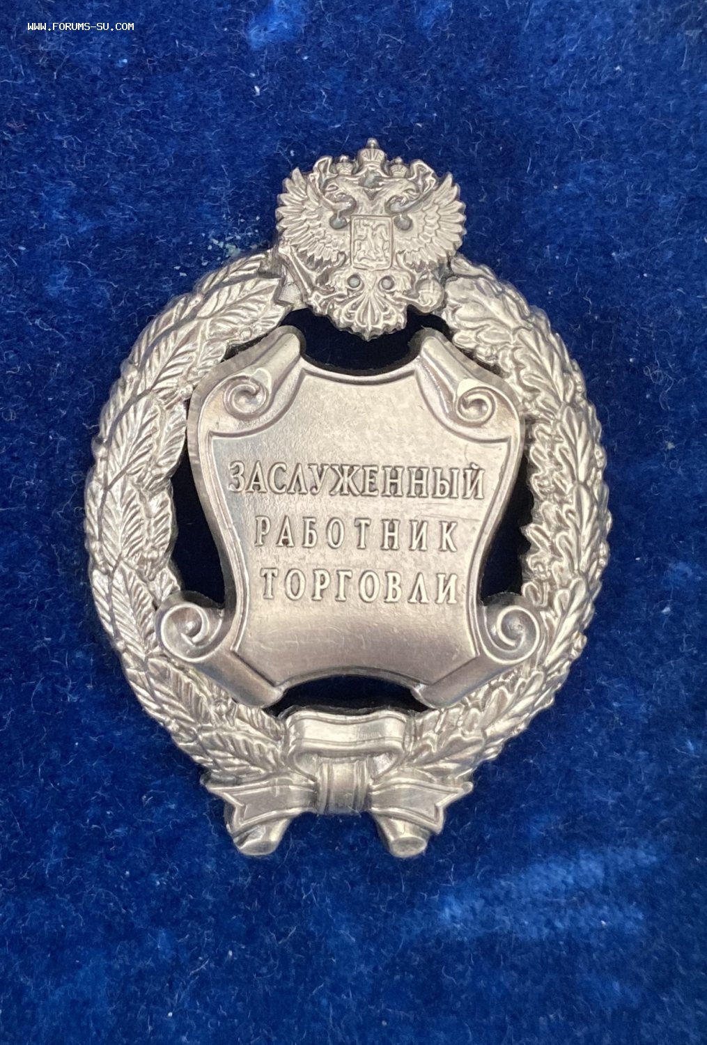 Заслуженный работник торговли РФ. Редкий. Упразднён в 2010 г. Кол-во награждений 1532 согласно Википедии. Вес 23.00г. МПЦ 25000 блиц 30000
