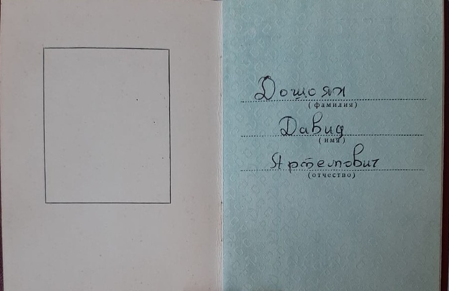 Кавалер - ДОШОЯН ДАВИД АРТЕМОВИЧ, 1929 г.р., армянин, ГССР, рабочий Минавтопром.