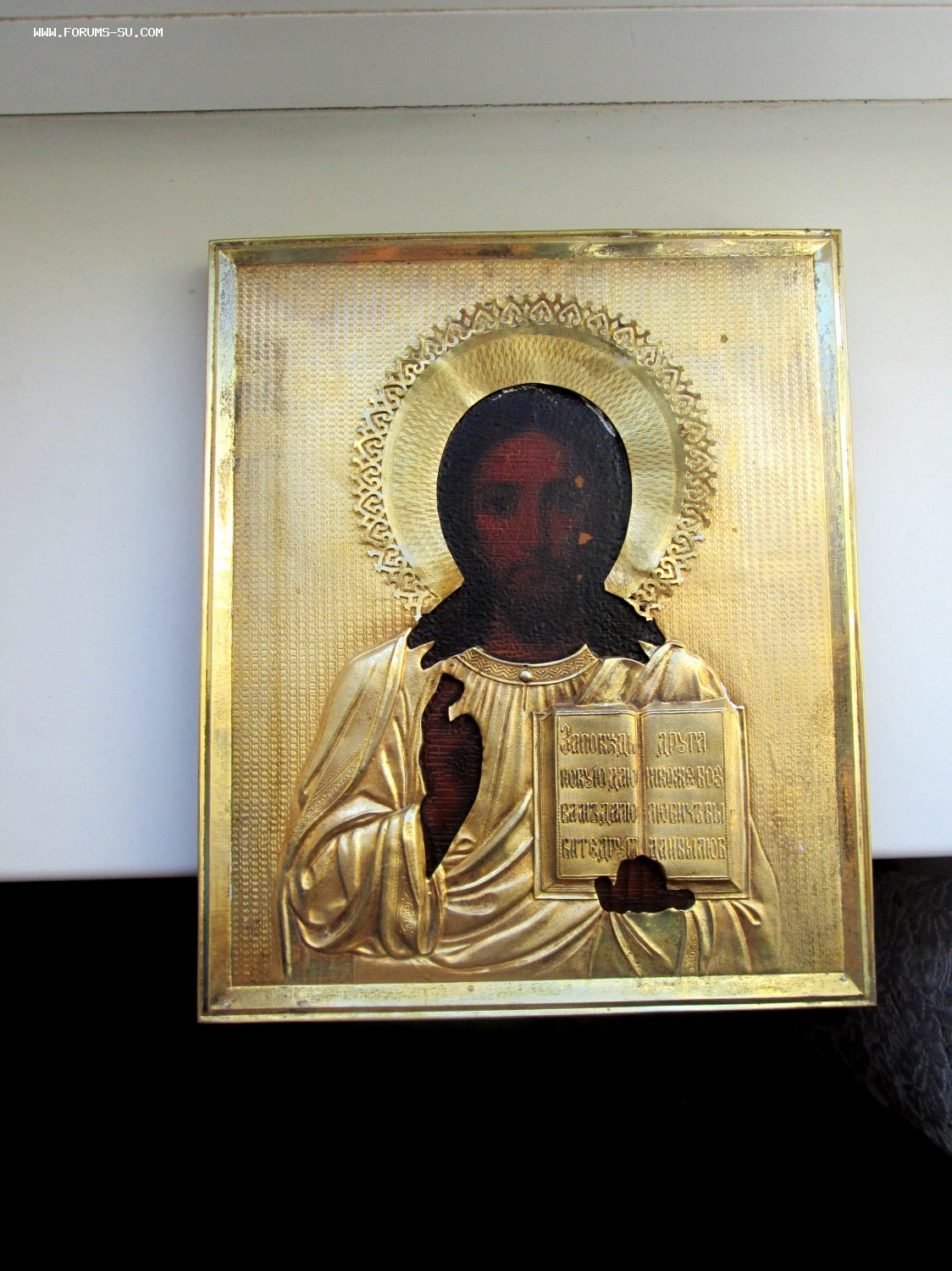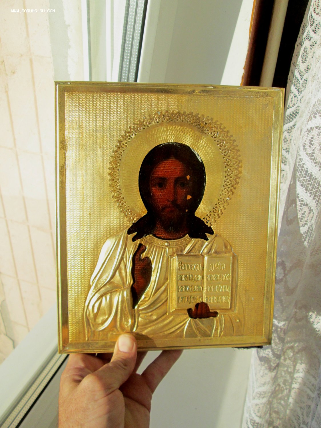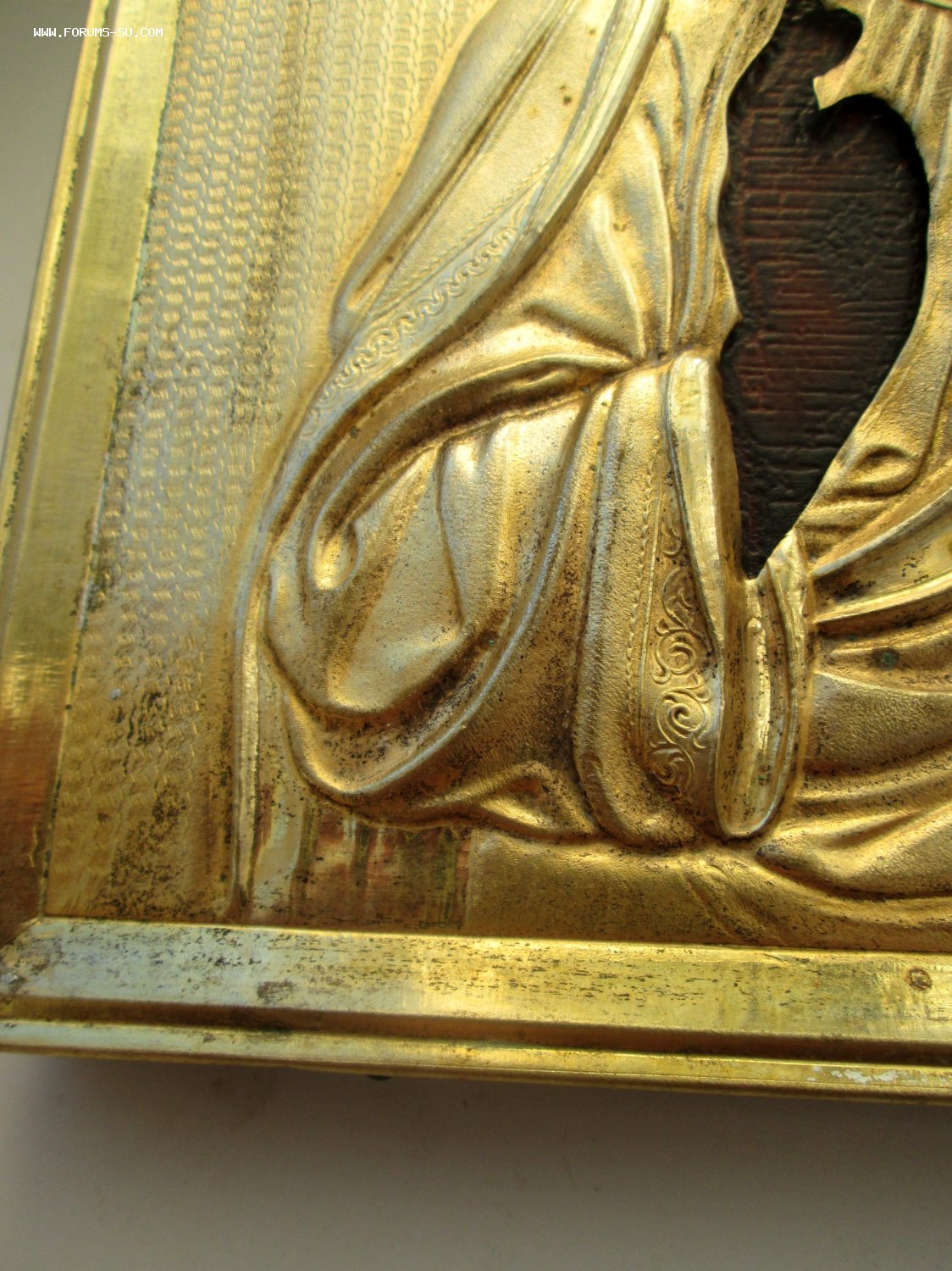 Оклад латунный. Торцы в отличном состоянии, на обороте родная ткань.