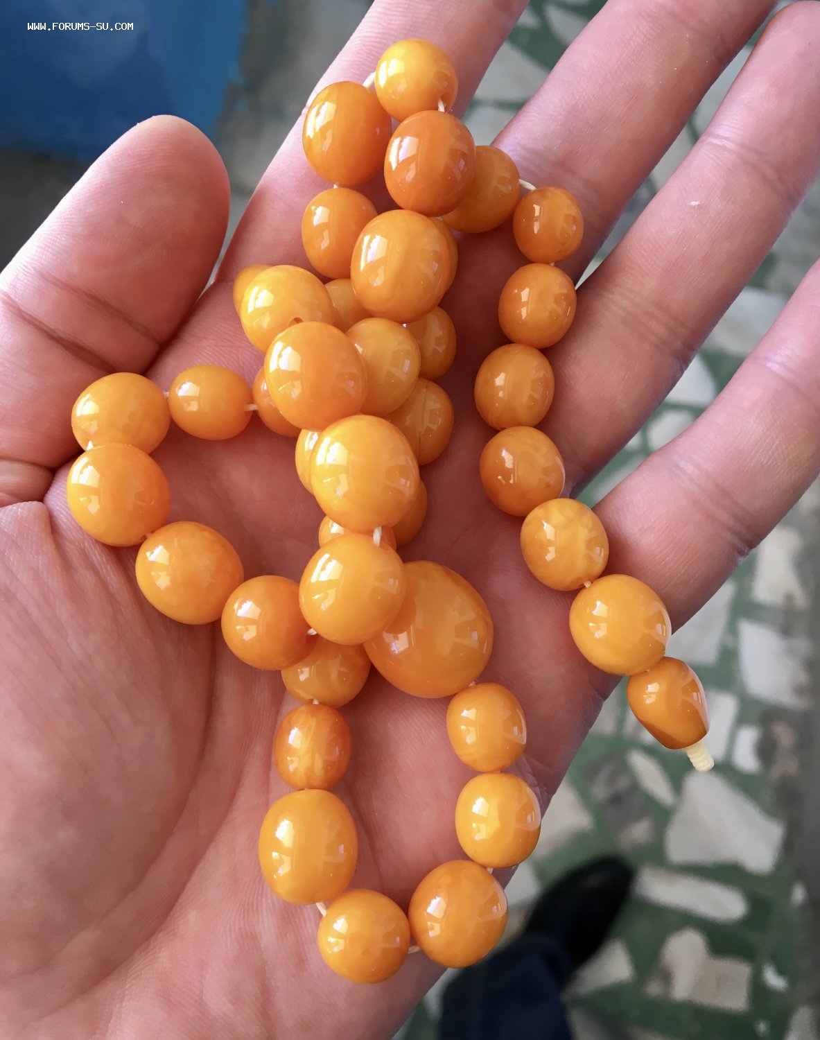Бусы в отличной сохранности. Только на янтарной застежке есть скольчик (сделал фото крупным планом). Четыре бусины отдельно от бус. Нужно нанизать по новой (на фото слетевшие 4 бусины показал).