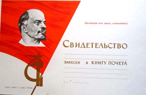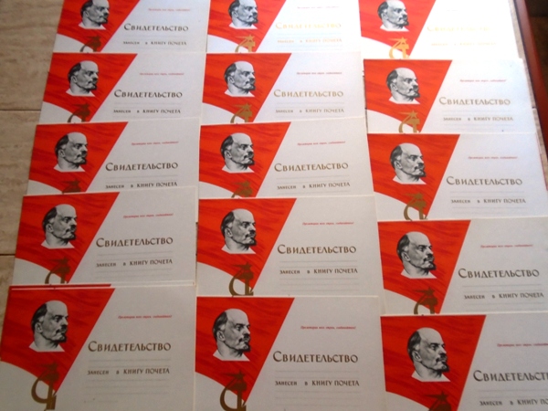Не заполненная Книга Почета и 50 чистых свидетельств разных типов о занесении в Книгу Почета.
