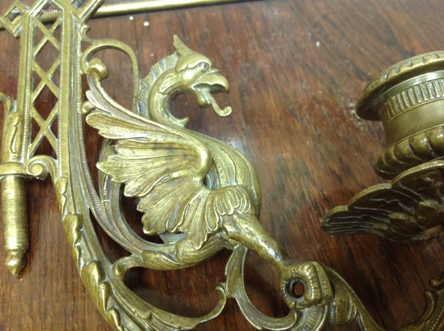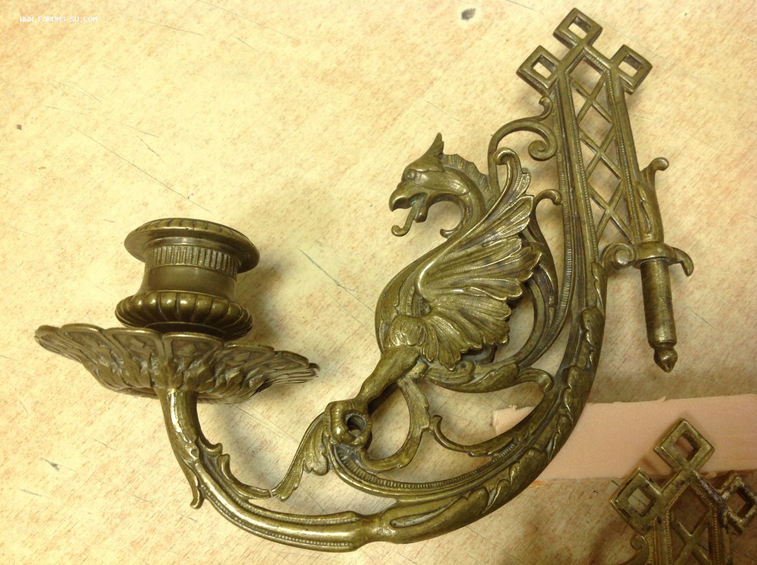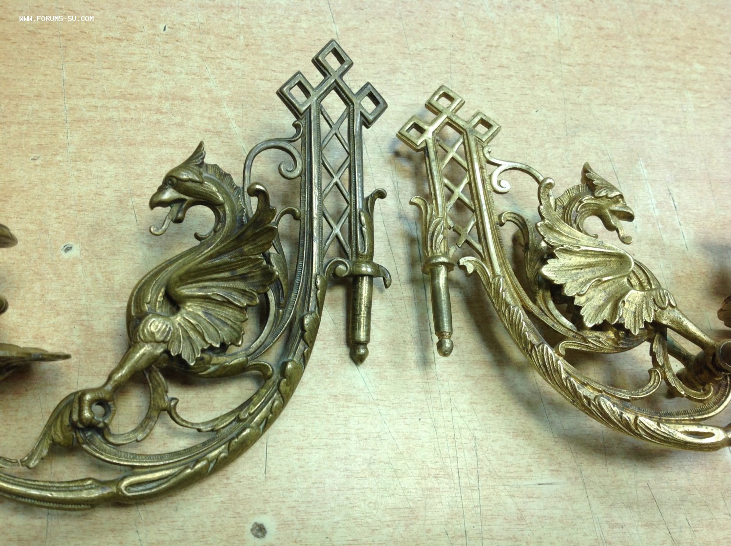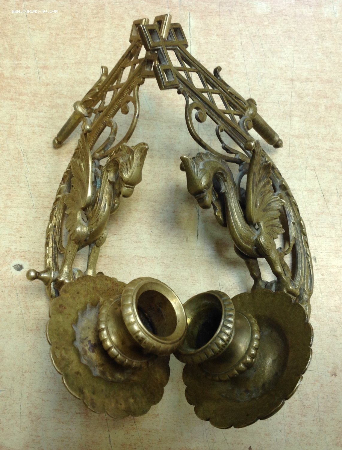 2 старинных подсвечника в виде Грифонов Moel - 21 сен 2020 14:55.32 × Мини профиль пользователя Moel Звание: Внимание! Кидала! Сообщения: 22748 Зарегистрирован: 31 авг 2005 21:49.38 Откуда: Россия Статус: Не в сети - 21 сен 2020 14:55.32 #6461198 Бронза . Габариты 18 см на 15 см. Сняты с одного пианино, но патина разная на них.. У одного в лапах нет перекладины. Следы бытования..Предложите по РФ! Фото