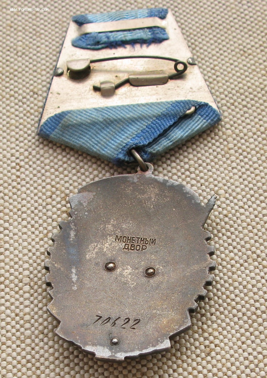 Орден Трудовое Красное Знамя 70 622 - Клеймо Монетного Двора расположено в центре ордена. Оба слова клейма прямые, без изгиба, нанесены единым штампом.