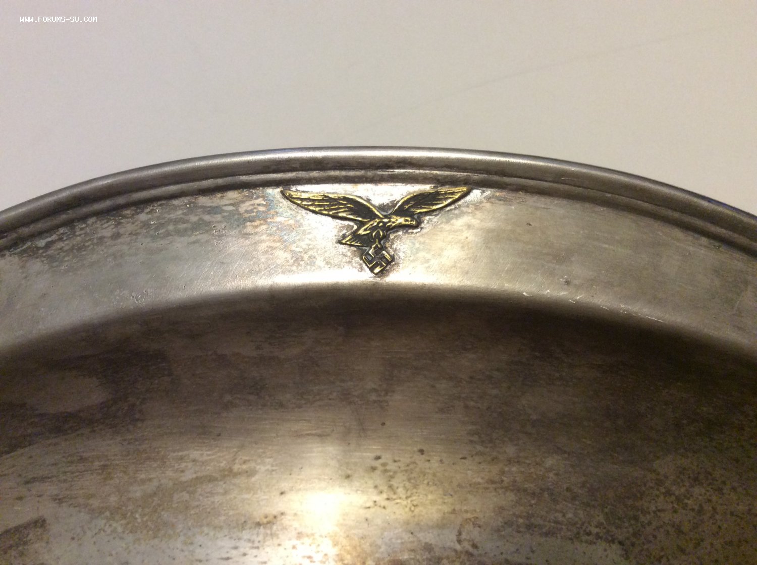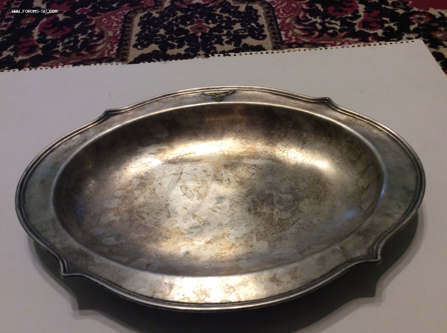 Размер42 см Х 29 см, на дне клеймо, по краю блюда бронзовая накладка - эмблема люфтваффе, предмет не чищен