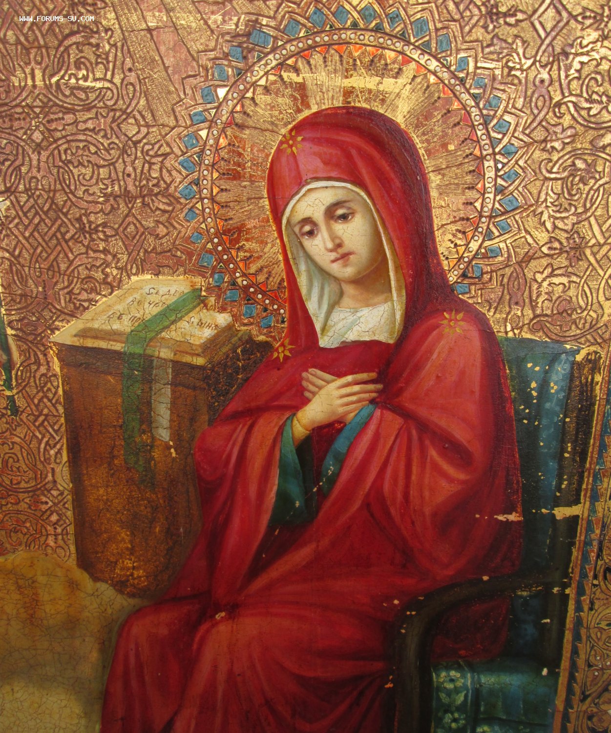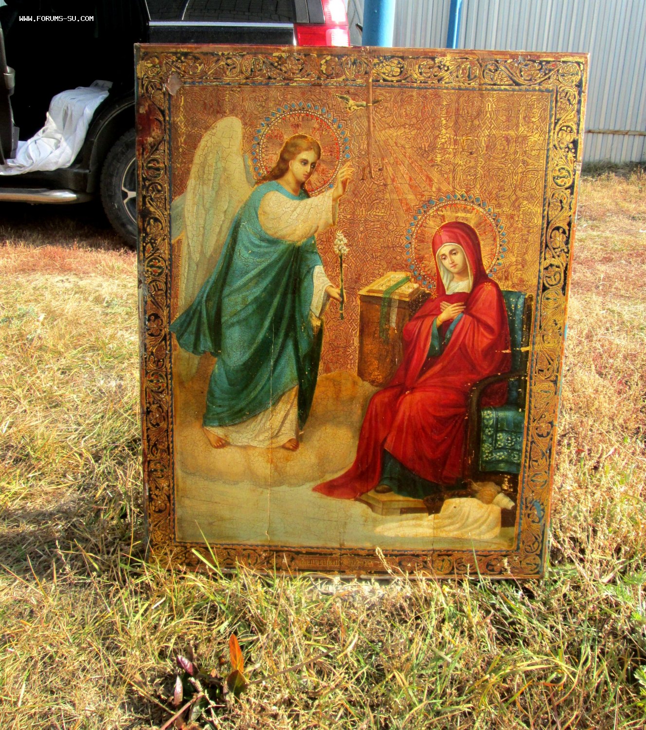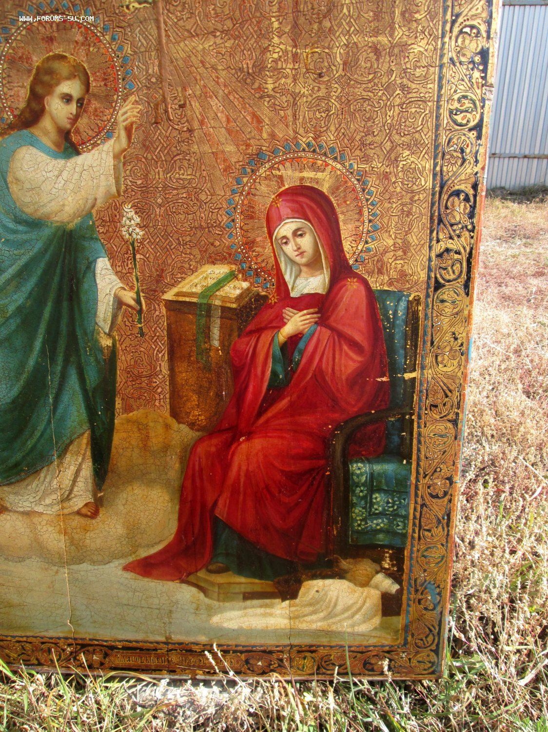В продаже Храмовый Образ "Благовещение Пресвятой Богородицы" Живопись на сусальном золоте 19 век, без реставрации.