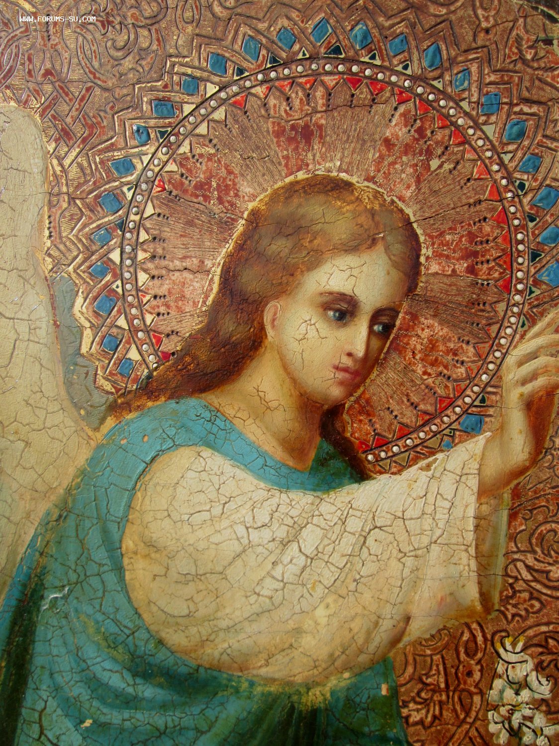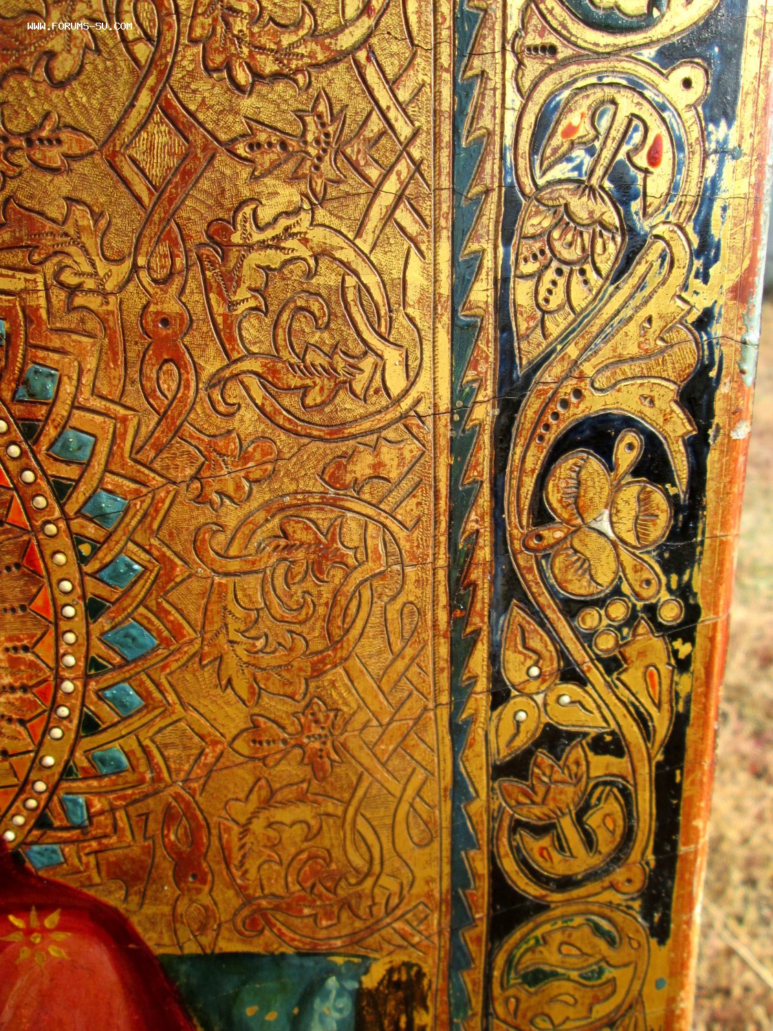 Дерево, левкас, сусальное золото, холодные эмали, чеканка по левкасу .