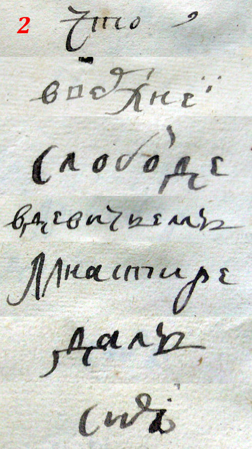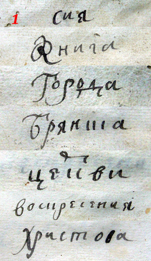 c пометками - слова нанесены по одному на странице в начале книги.