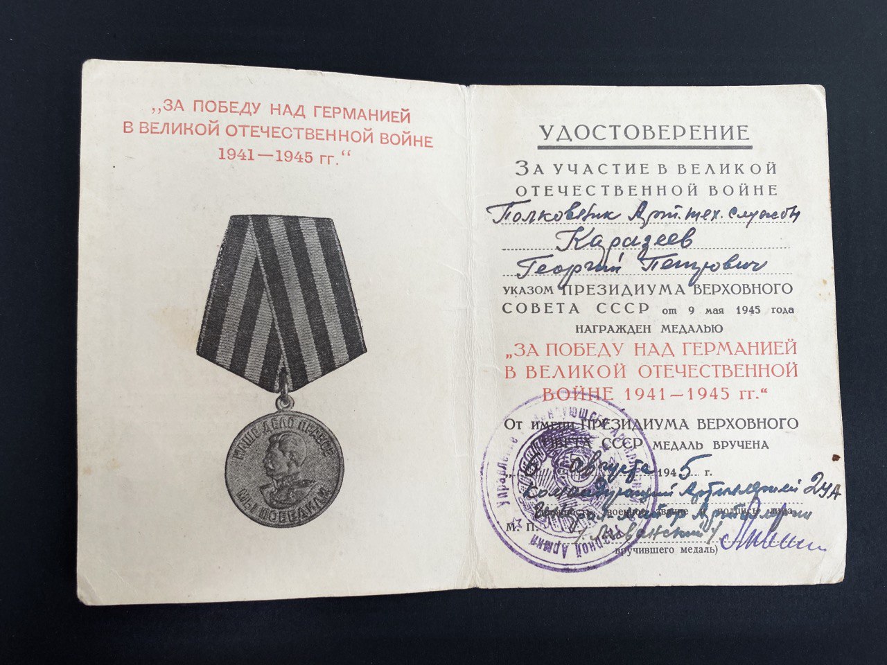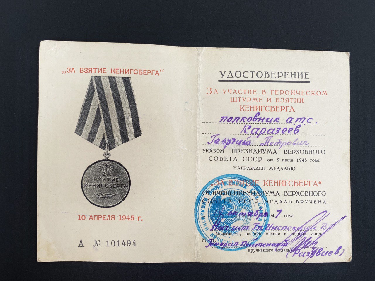 Награждён 3 БКЗ. ОЛ. КЗ. Их нет в комплекте.