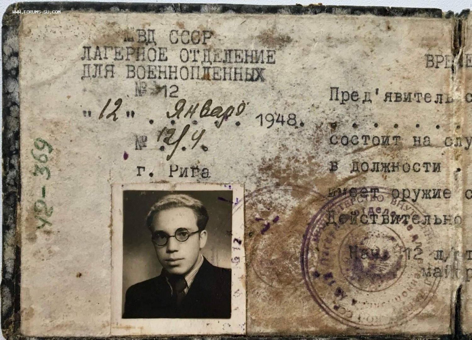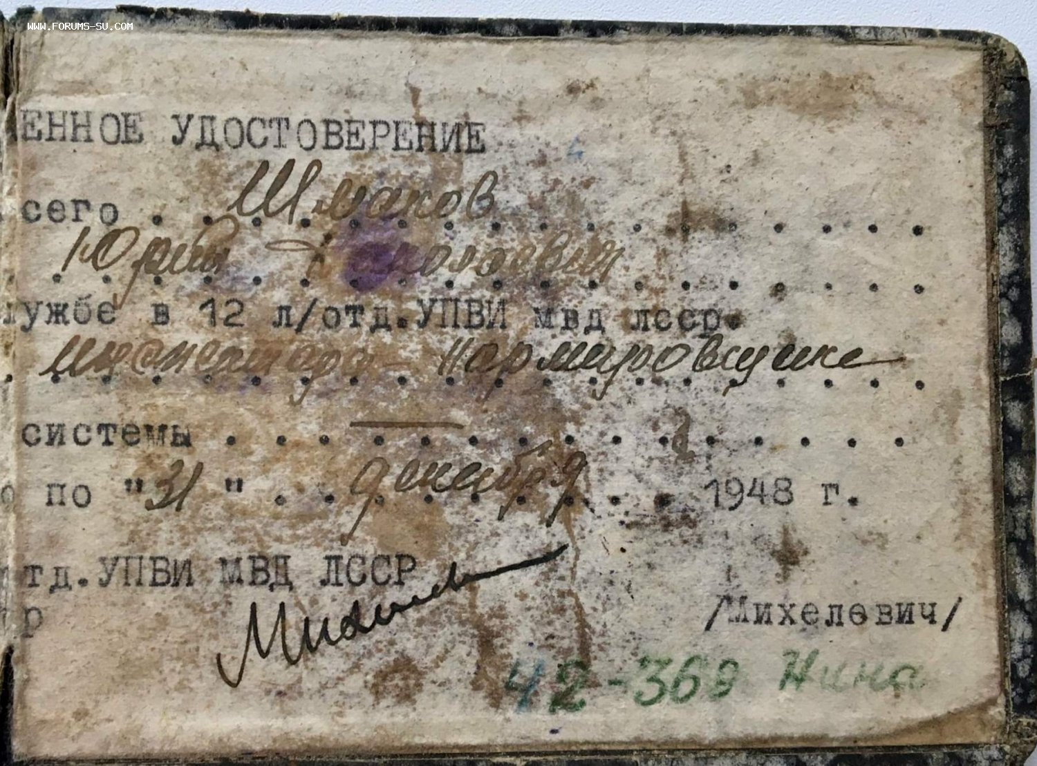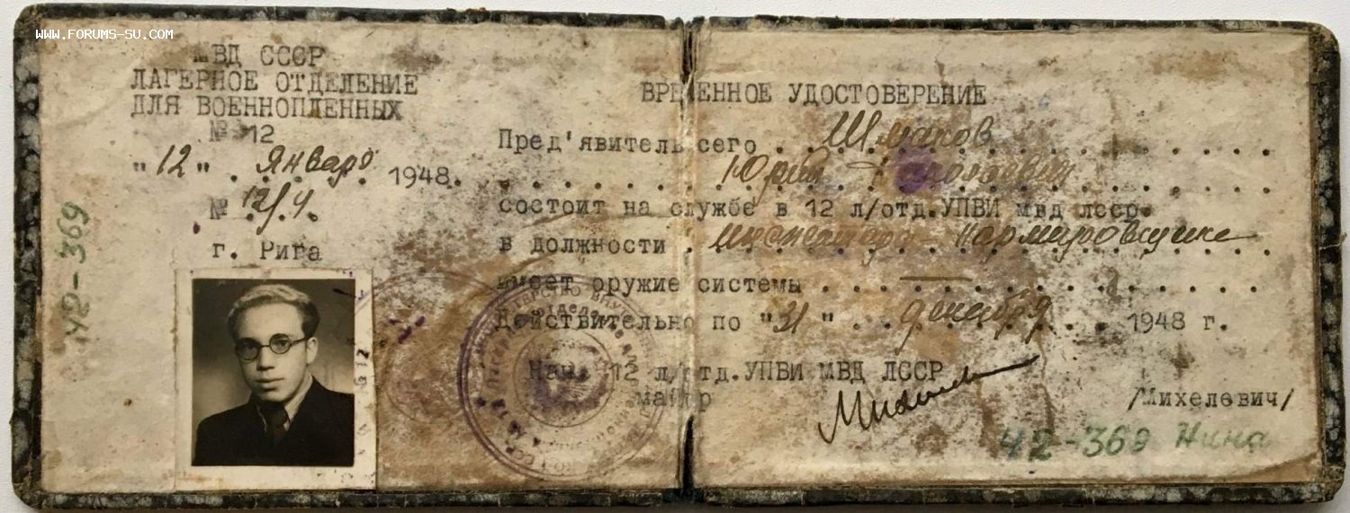 Удостоверение работника МВД. Лагерное отделение военнопленных 1948 год. ОРИГИНАЛ