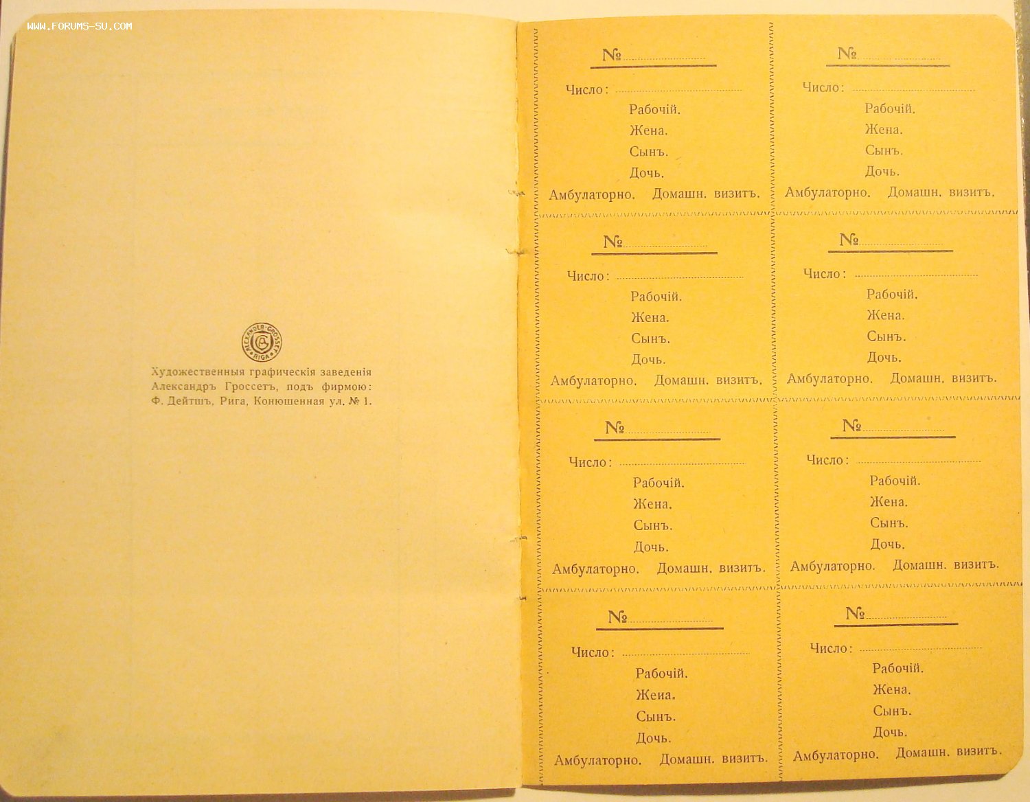 1. Книга на право пользования врачебной помощью и медикаментами безплатно.....26 стр. + 8 листов отрывных талонов ( 64 шт )
