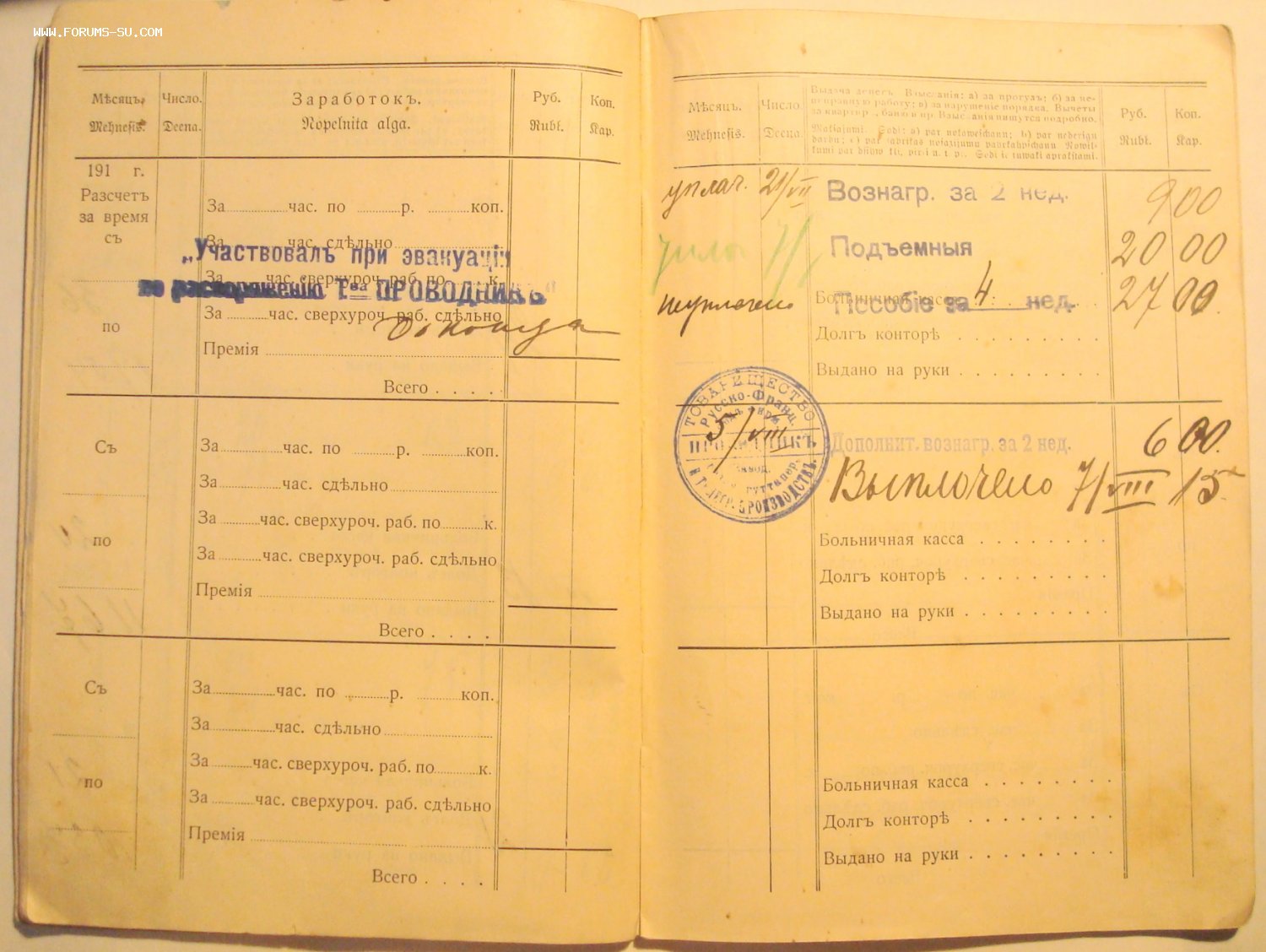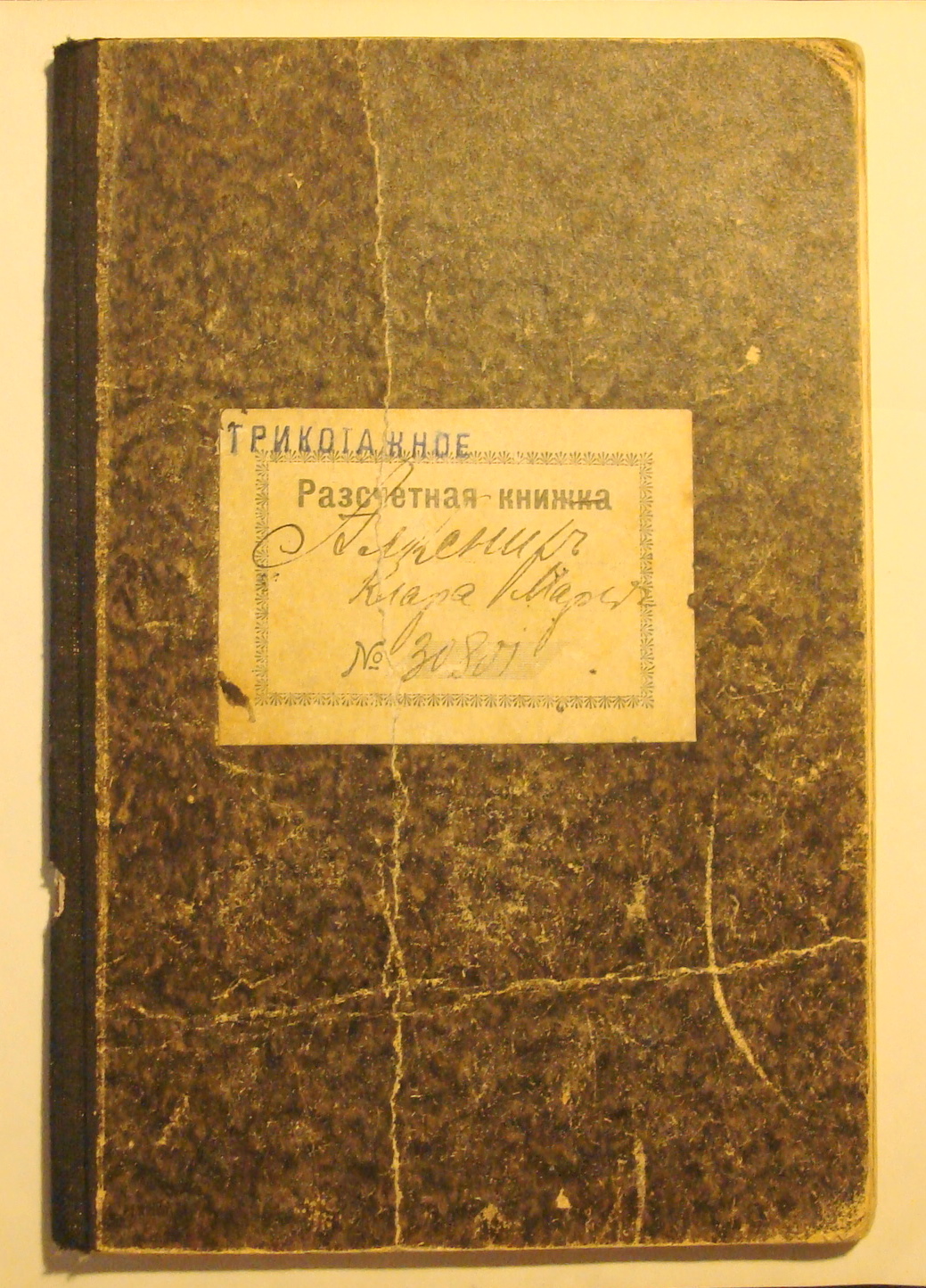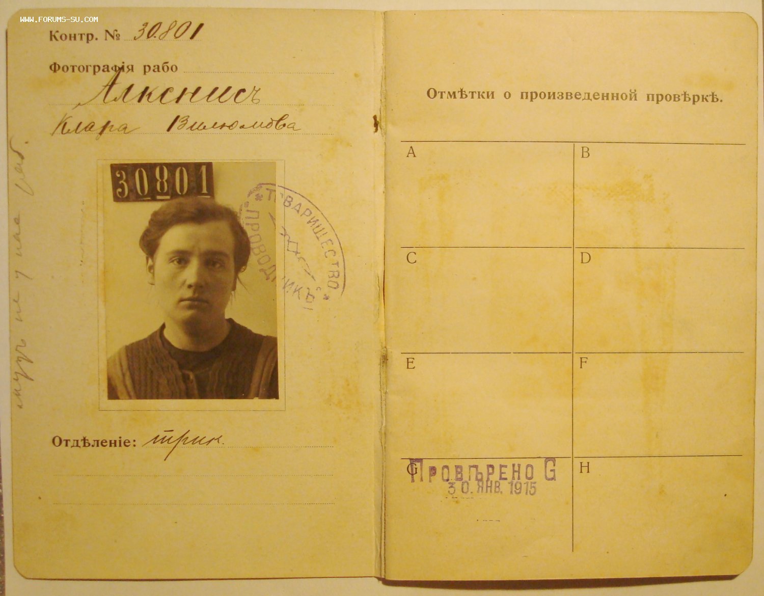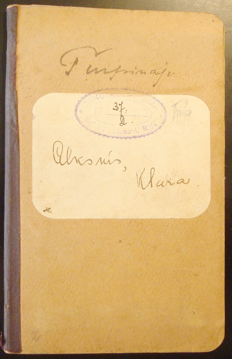 2.Разсчетная книжка товарищества "Проводник" 52 стр. на Клару Алкснис, в книжке есть отметка об участии в эвакуации предприятия в 1915г.