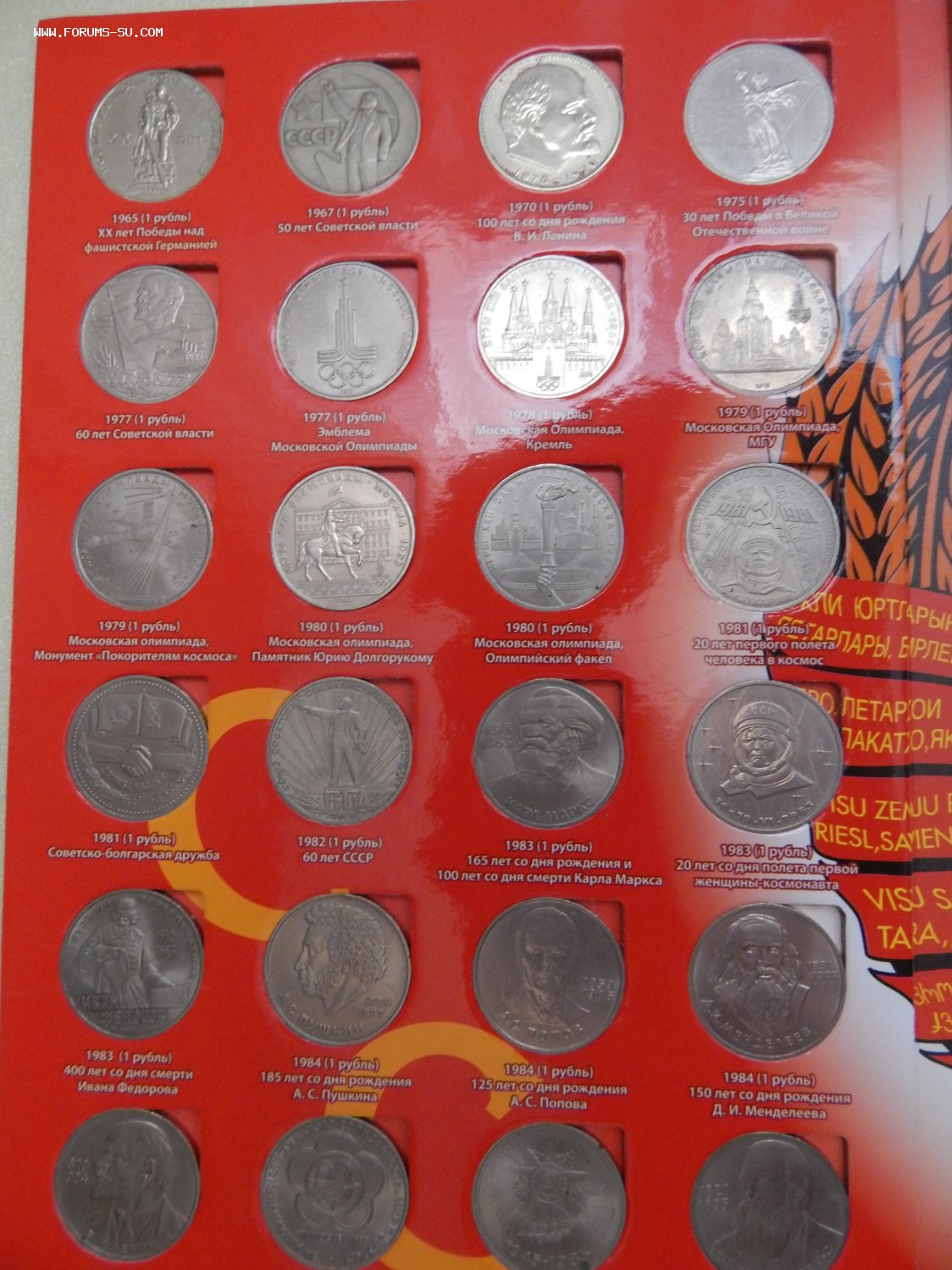 Полный набор юбилейных рублей СССР 1965-1991 гг. 64шт. в альбоме