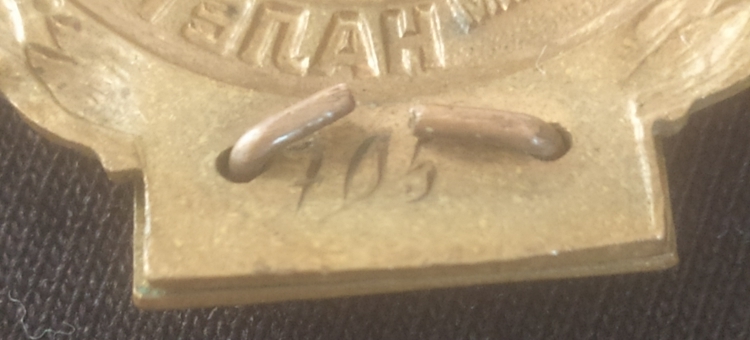 Латунь, эмаль , никаких чирков или повреждений. накладка "Бормеханник.15000"
