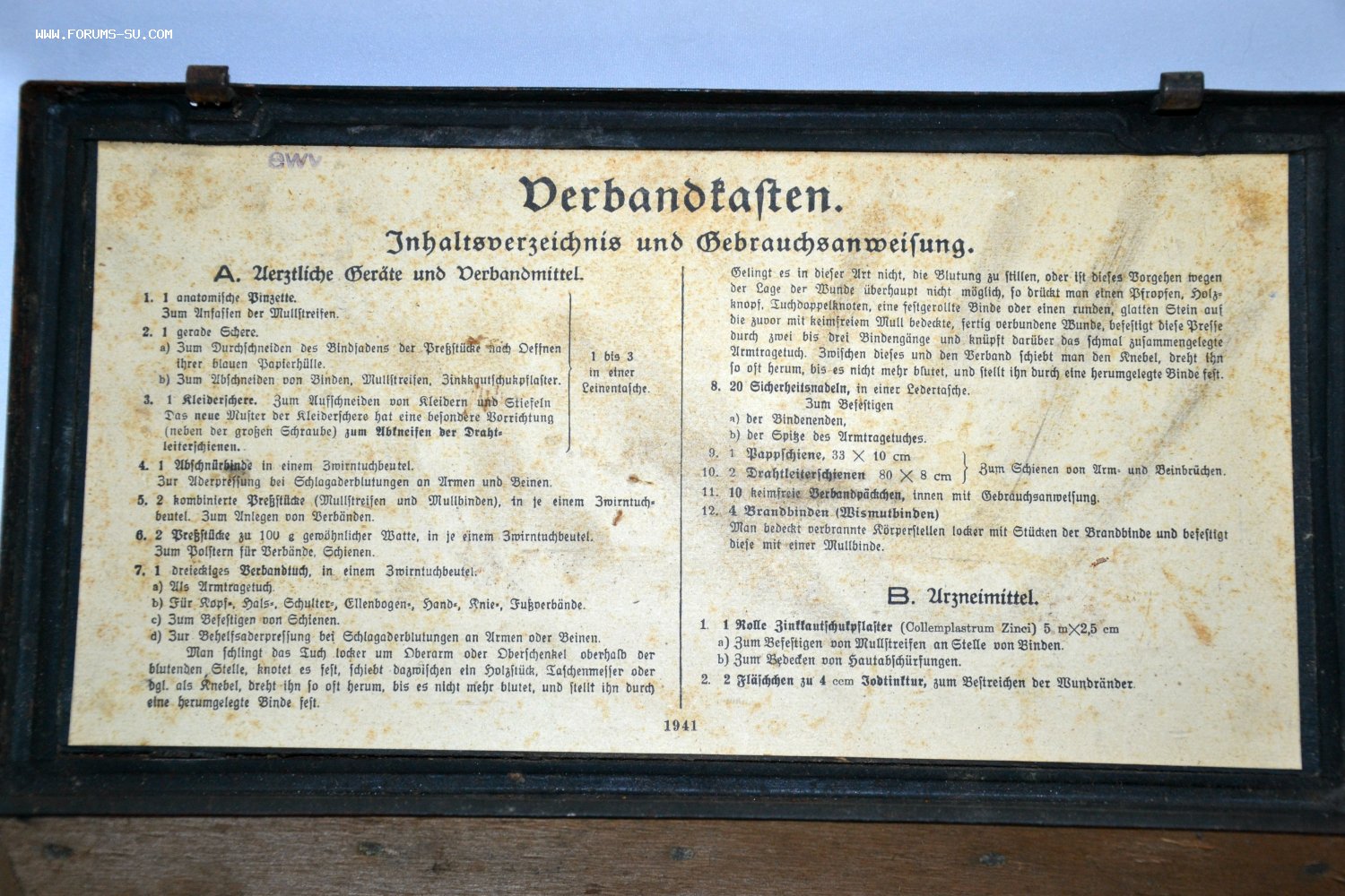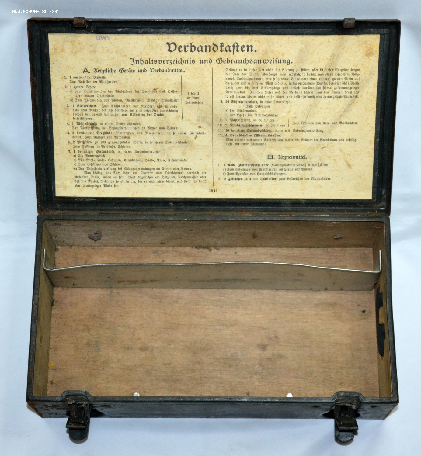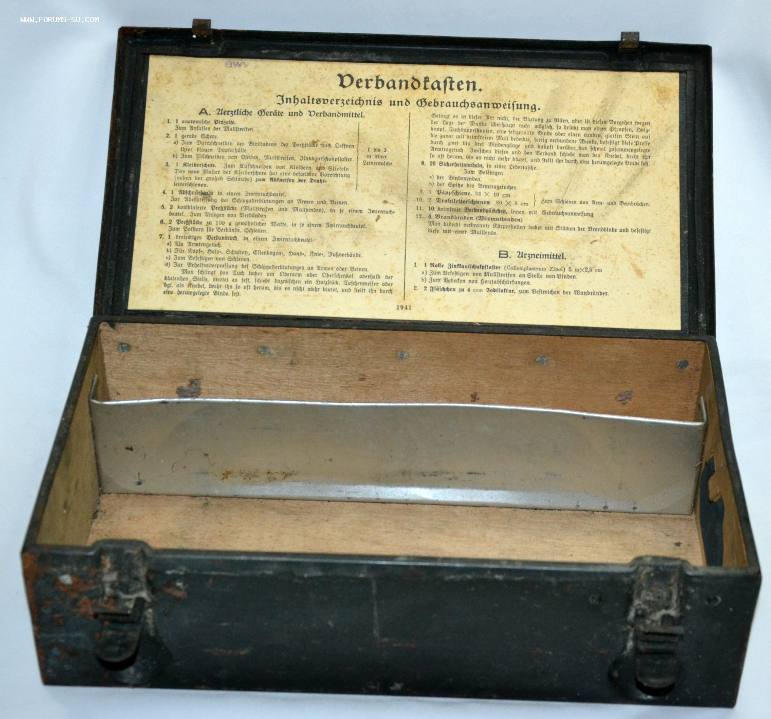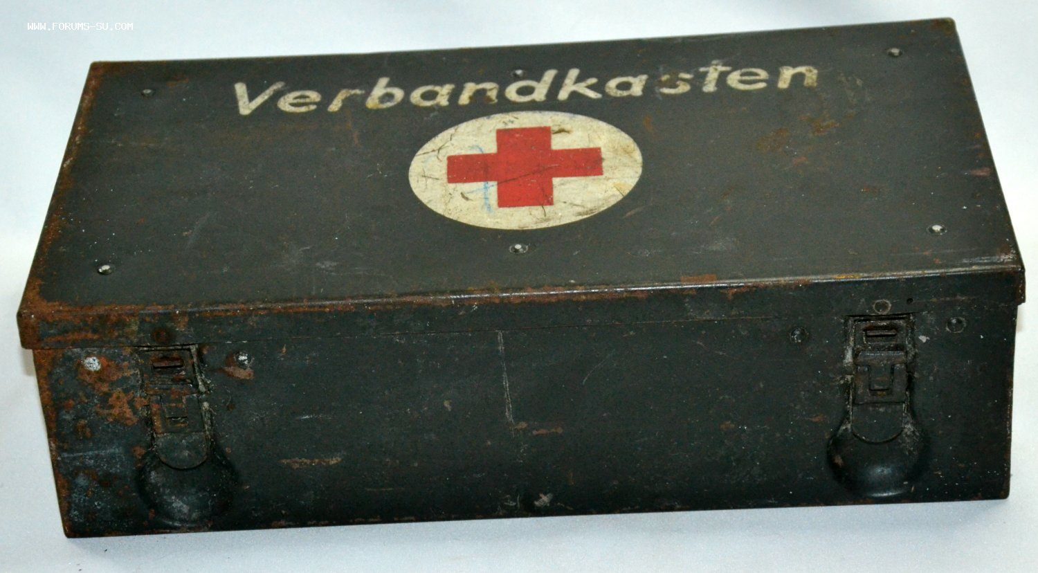 Ящик металлический,применялся для комплектации германской авто-бронетехники медикаментами.Содержали средства для помощи при переломах-шины и прочие лекарства.