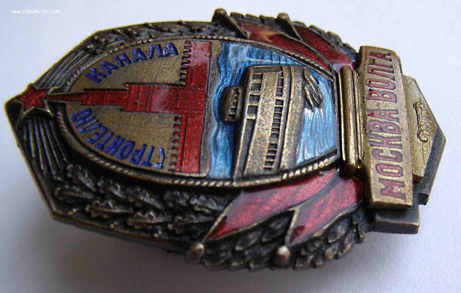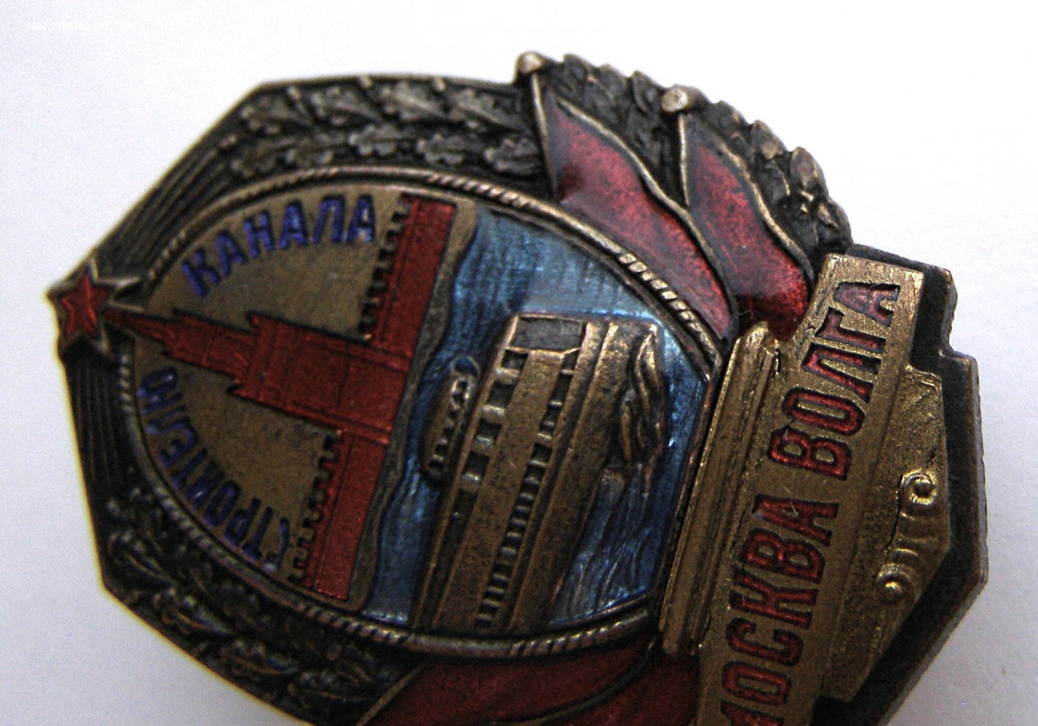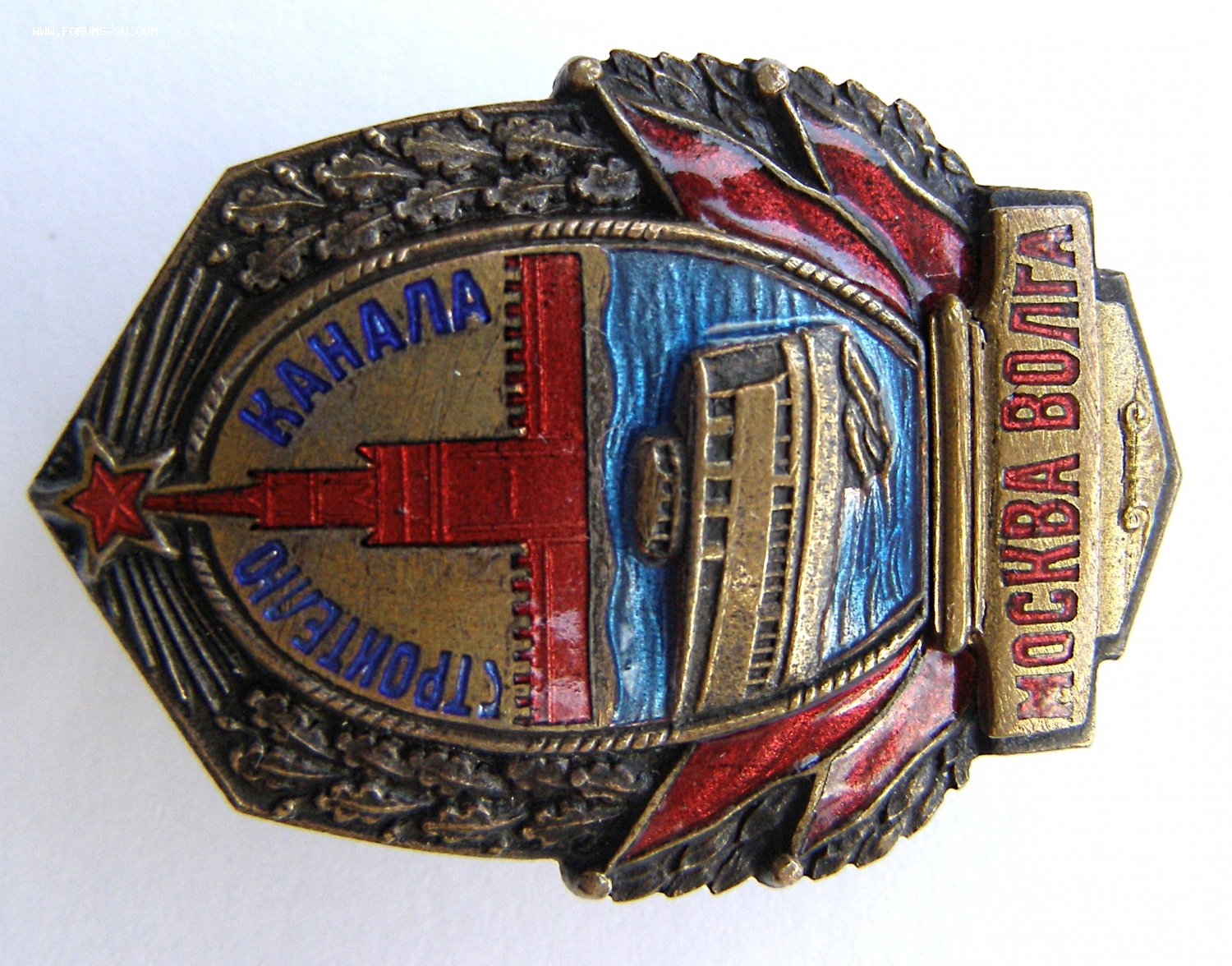 Постановление о строительстве канала Москва – Волга было принято СНК СССР 28 октября 1932 года. Для обеспечения его рабочей силой был организован Дмитровский исправительно-трудовой лагерь НКВД. Канал Москва – Волга имени И.В. Сталина был сдан в эксплуатацию в сентябре 1937 года. Знак был учрежден на основании п.2 Постановления ЦИК и СНР СССР от 14 июля 1937 года.