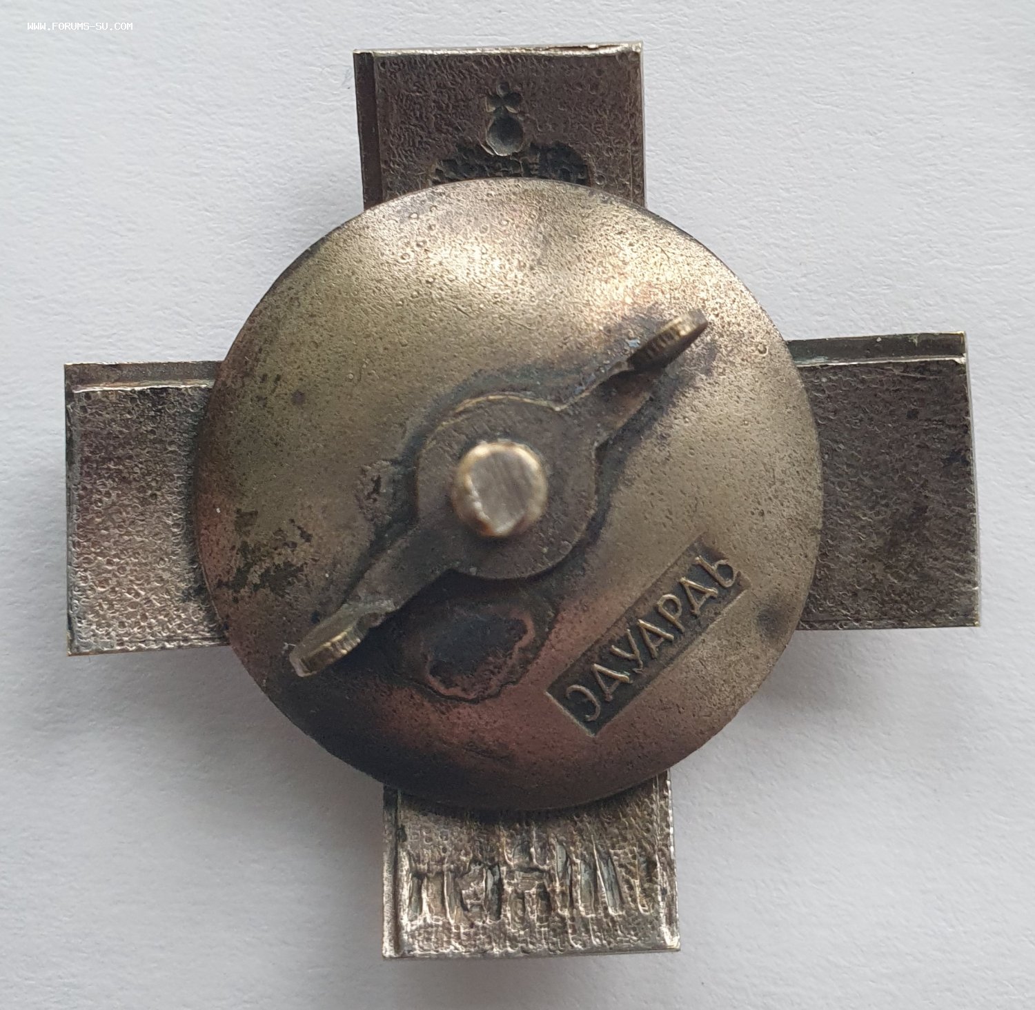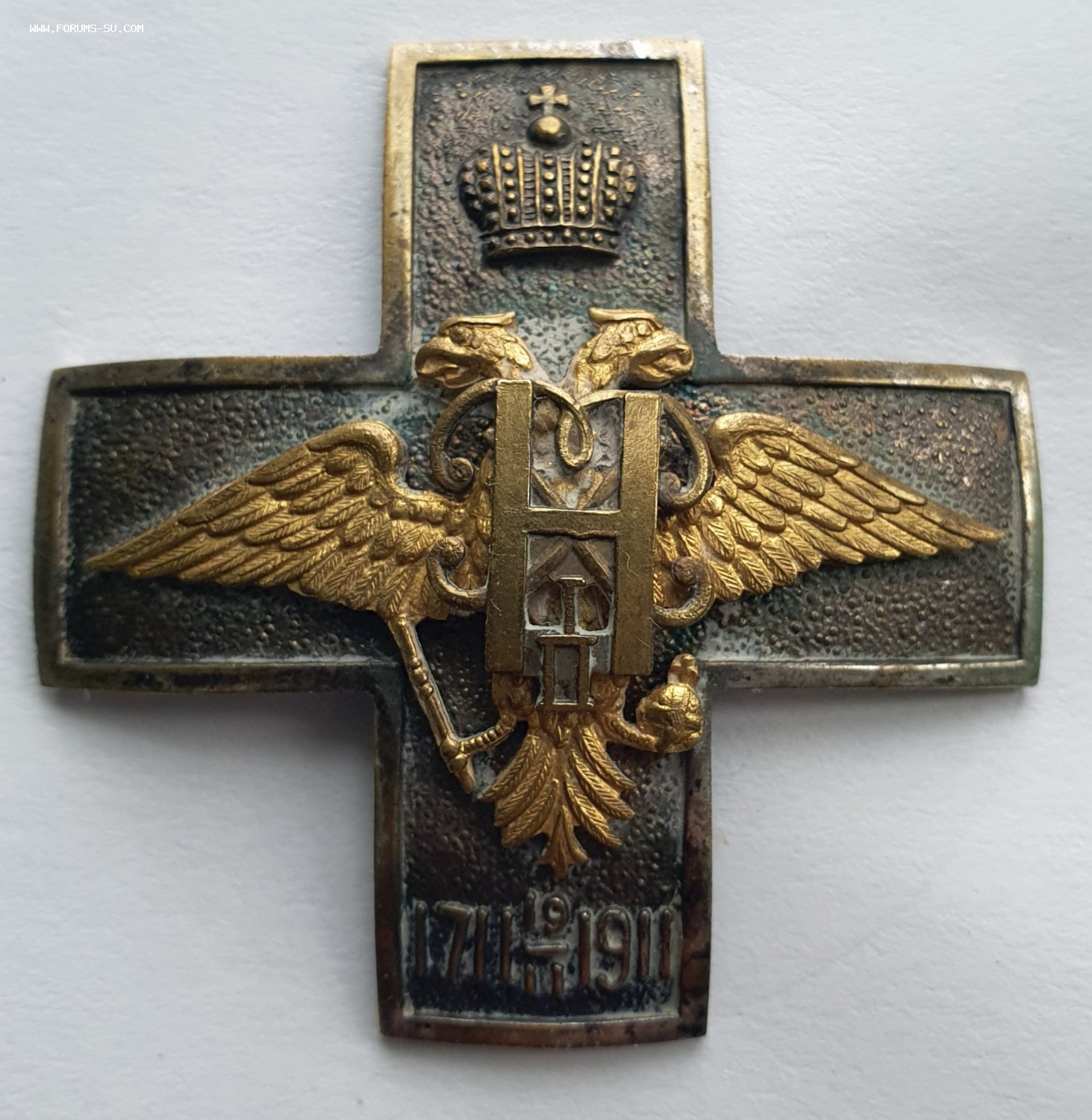 Знак 36-го пехотного Орловского генерал-фельдмаршала князя Варшавского графа Паскевича-Эриванского полка (для нижних чинов). С.-Петербург, 1914–1917 гг. Фирма «Эдуард». Клеймо фирмы на гайке внизу — «ЭДУАРДЪ». Бронза, позолота, серебрение, оксидирование, 20,49 г. Размеры 43,5×43,3 мм. Сохранность отличная. Патрикеев, Бойнович.2# 4.2.36. Утвержден 7 января 1914 г.