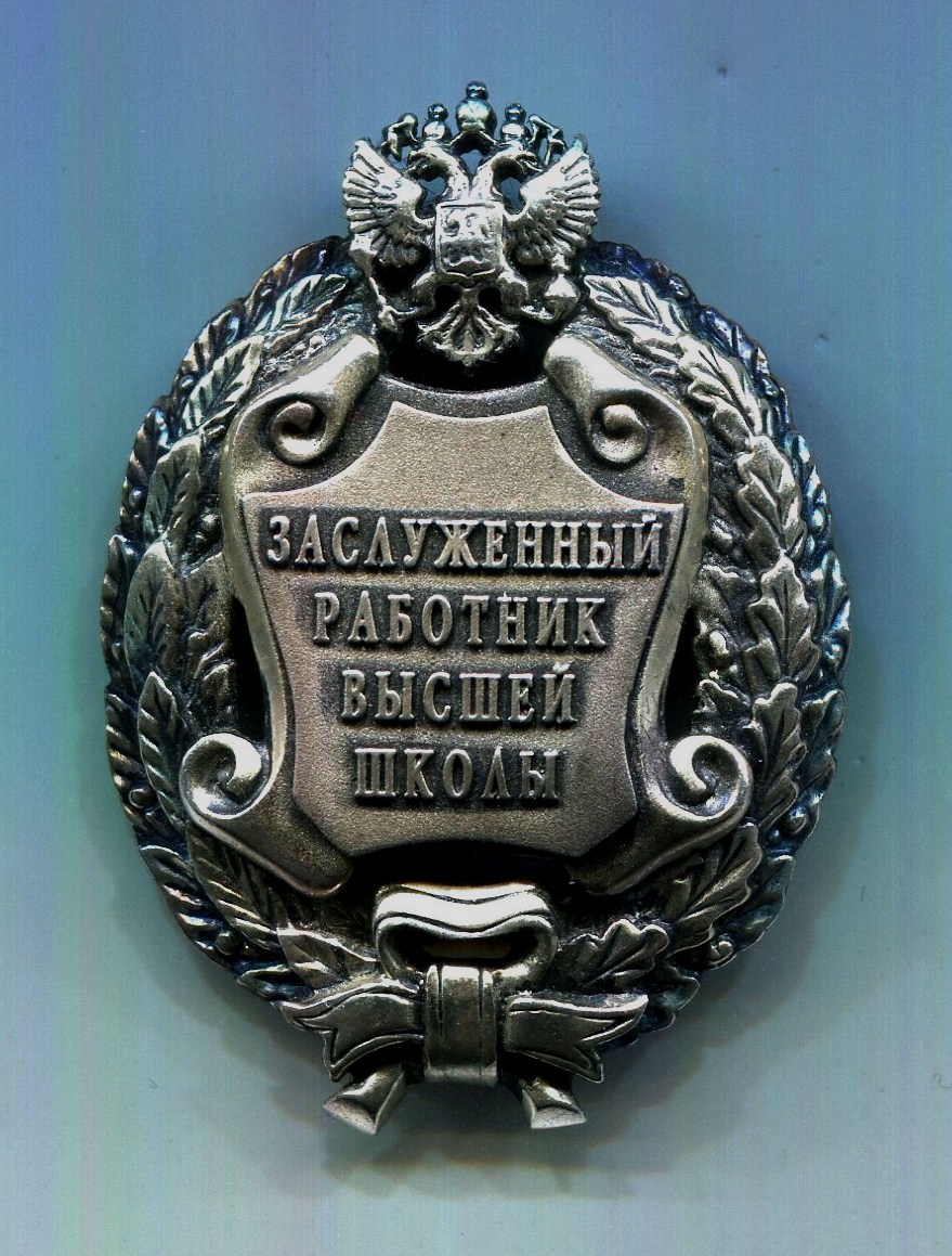 Знак к почетному званию "ЗАСЛУЖЕННЫЙ РАБОТНИК ВЫСШЕЙ ШКОЛЫ РОССИЙСКОЙ ФЕДЕРАЦИИ"