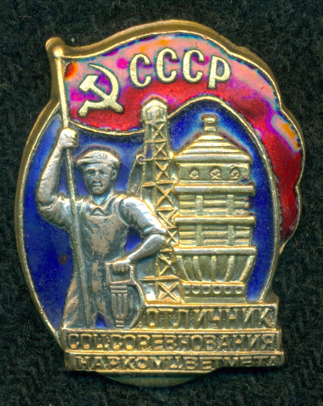 Состояние - великолепное. Если смущает мутная точка под правой рукой рабочего, на синей эмали, то спешу сообщить, что это под эмалью, и является браком при изготовлении этого знака.
